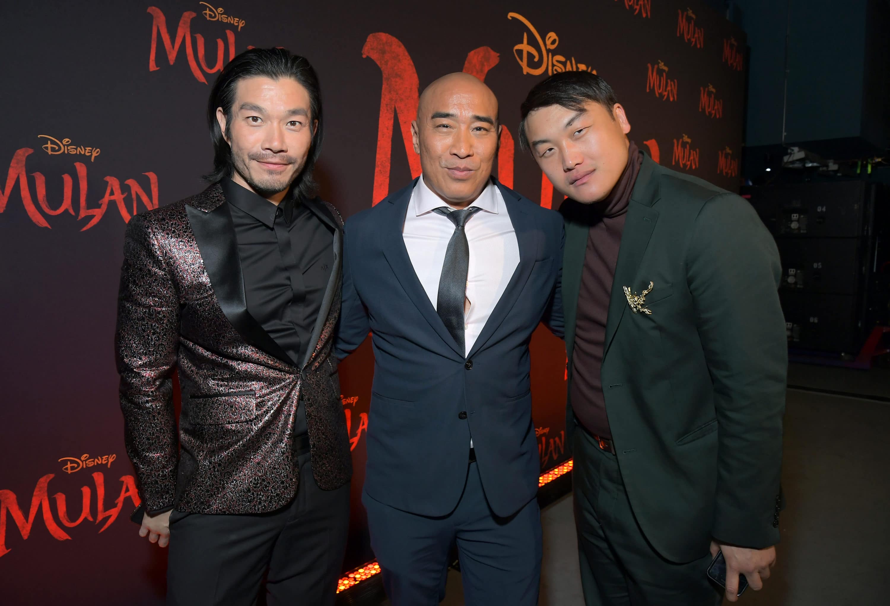 HOLLYWOOD, CALIFORNIA – MARCH 09: (L-R) Chen Tang, Nelson Lee, and Jimmy Wong speak onstage during the World Premiere of Disney’s ‘MULAN’ at the Dolby Theatre on March 09, 2020 in Hollywood, California. (Photo by Jesse Grant/Getty Images for Disney)