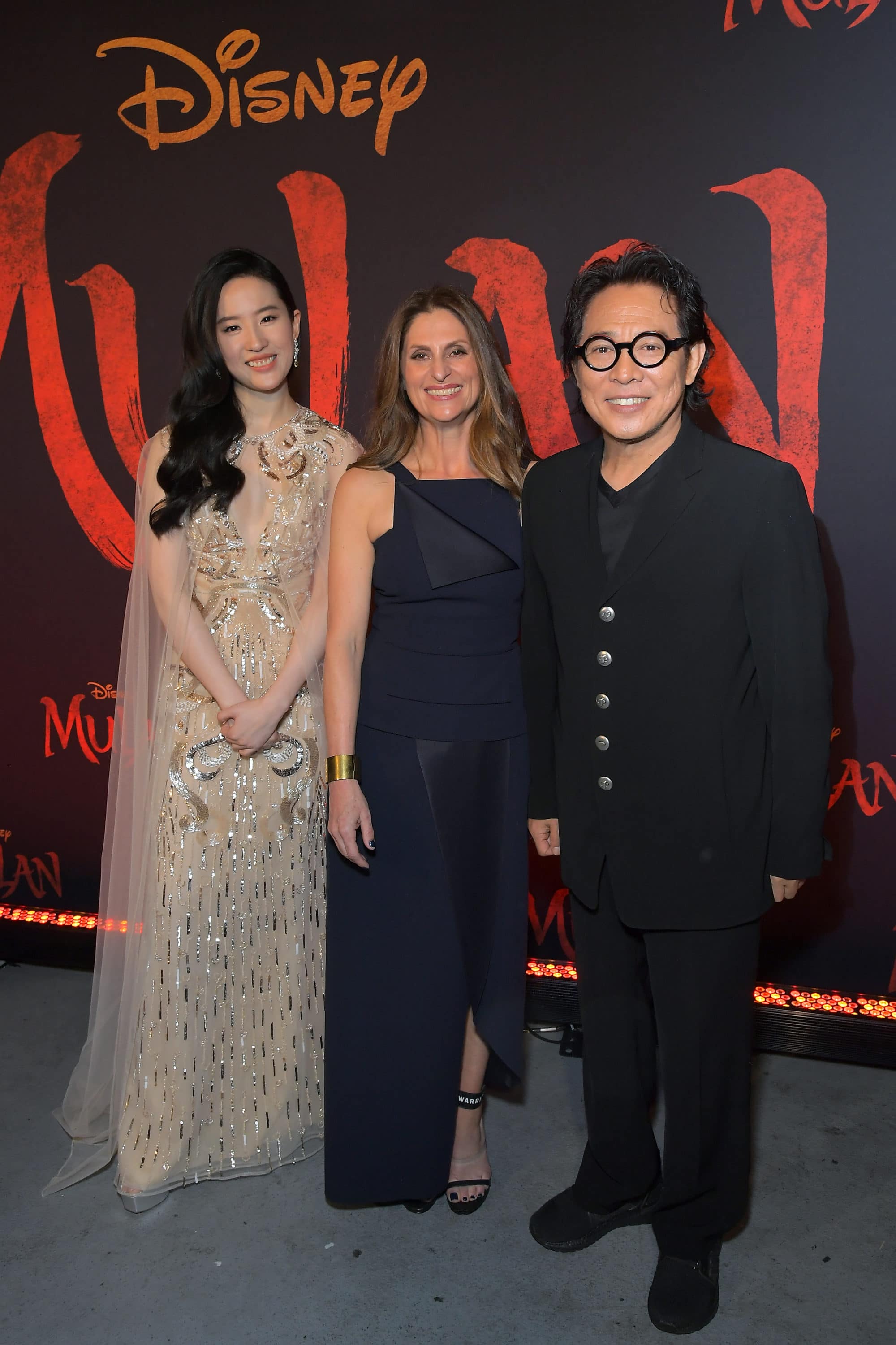 HOLLYWOOD, CALIFORNIA – MARCH 09: (L-R) Yifei Liu, Director Niki Caro, and Jet Li attend the World Premiere of Disney’s ‘MULAN’ at the Dolby Theatre on March 09, 2020 in Hollywood, California. (Photo by Charley Gallay/Getty Images for Disney)
