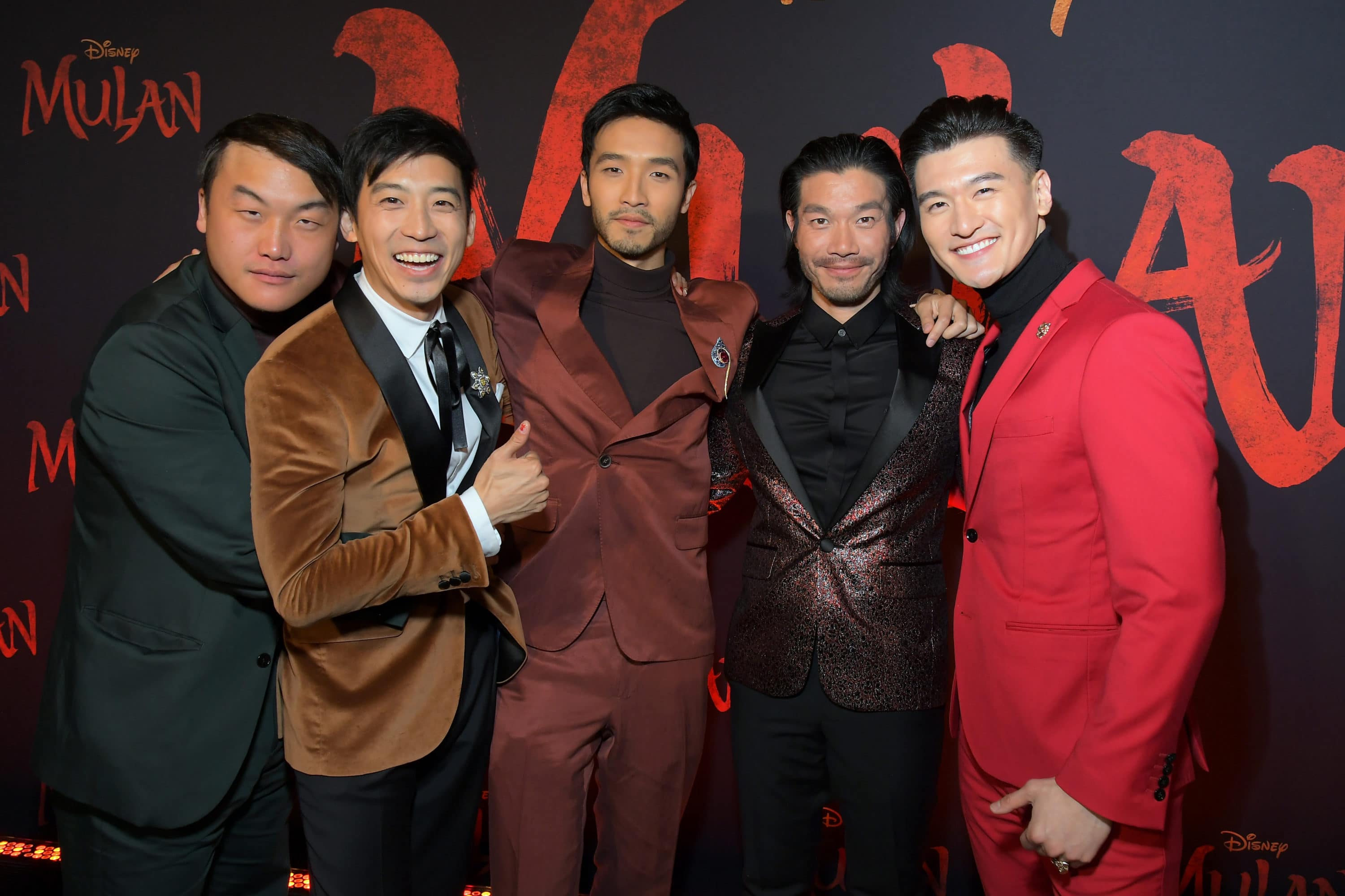 HOLLYWOOD, CALIFORNIA – MARCH 09: (L-R) Doua Moua, Jimmy Wong, Yoson An, Nelson Lee, and Chen Tang attend the World Premiere of Disney’s ‘MULAN’ at the Dolby Theatre on March 09, 2020 in Hollywood, California. (Photo by Charley Gallay/Getty Images for Disney)