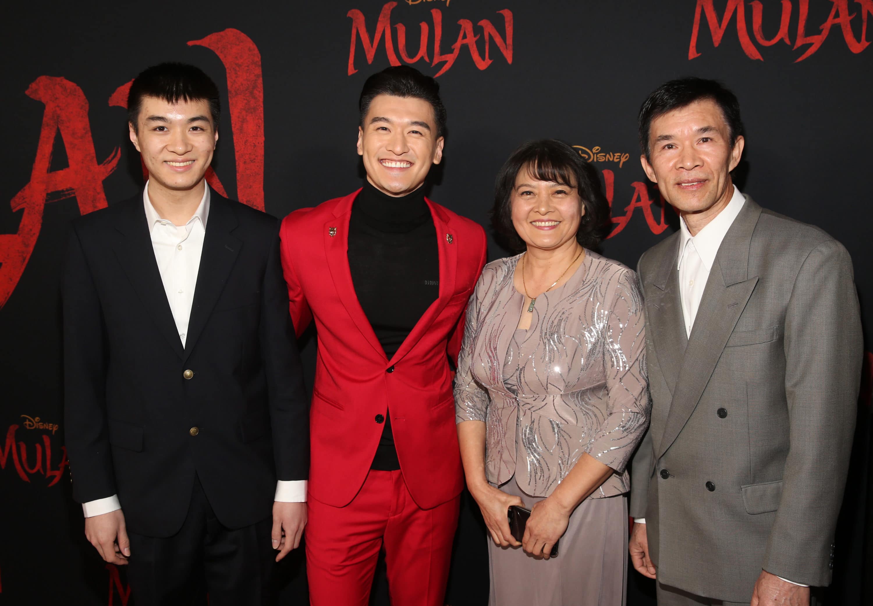 HOLLYWOOD, CALIFORNIA – MARCH 09: Chen Tang (2nd from L) and guests attend the World Premiere of Disney’s ‘MULAN’ at the Dolby Theatre on March 09, 2020 in Hollywood, California. (Photo by Jesse Grant/Getty Images for Disney)