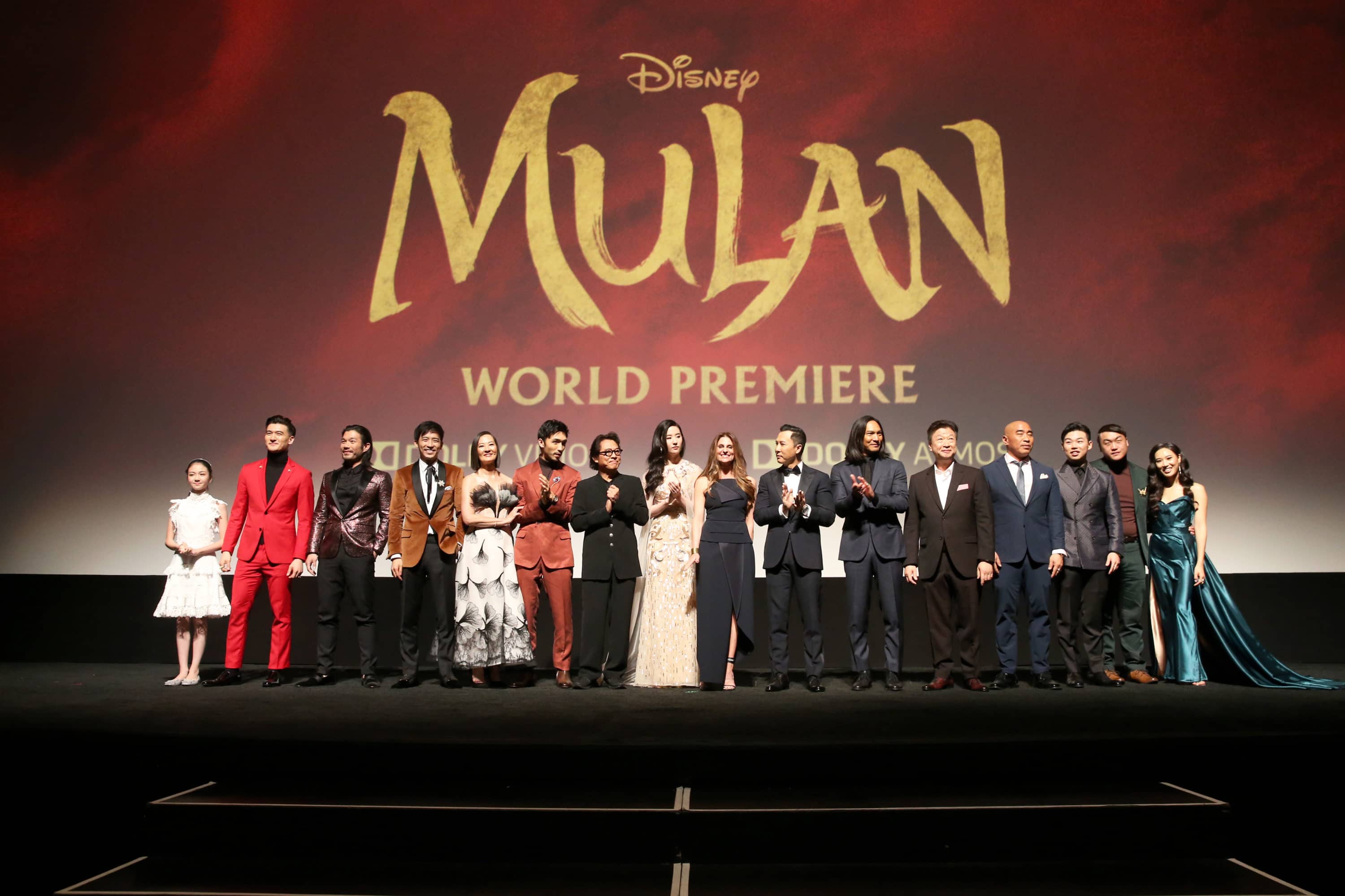 HOLLYWOOD, CALIFORNIA – MARCH 09: (L-R) Crystal Rao, Chen Tang, Nelson Lee, Jimmy Wong, Rosalind Chao, Yoson An, Jet Li, Yifei Liu, Director Niki Caro, Donnie Yen, Jason Scott Lee, Tzi Ma, Ron Yuan, Jun Yu, Doua Moua, and Xana Tang speak onstage during the World Premiere of Disney’s ‘MULAN’ at the Dolby Theatre on March 09, 2020 in Hollywood, California. (Photo by Jesse Grant/Getty Images for Disney)