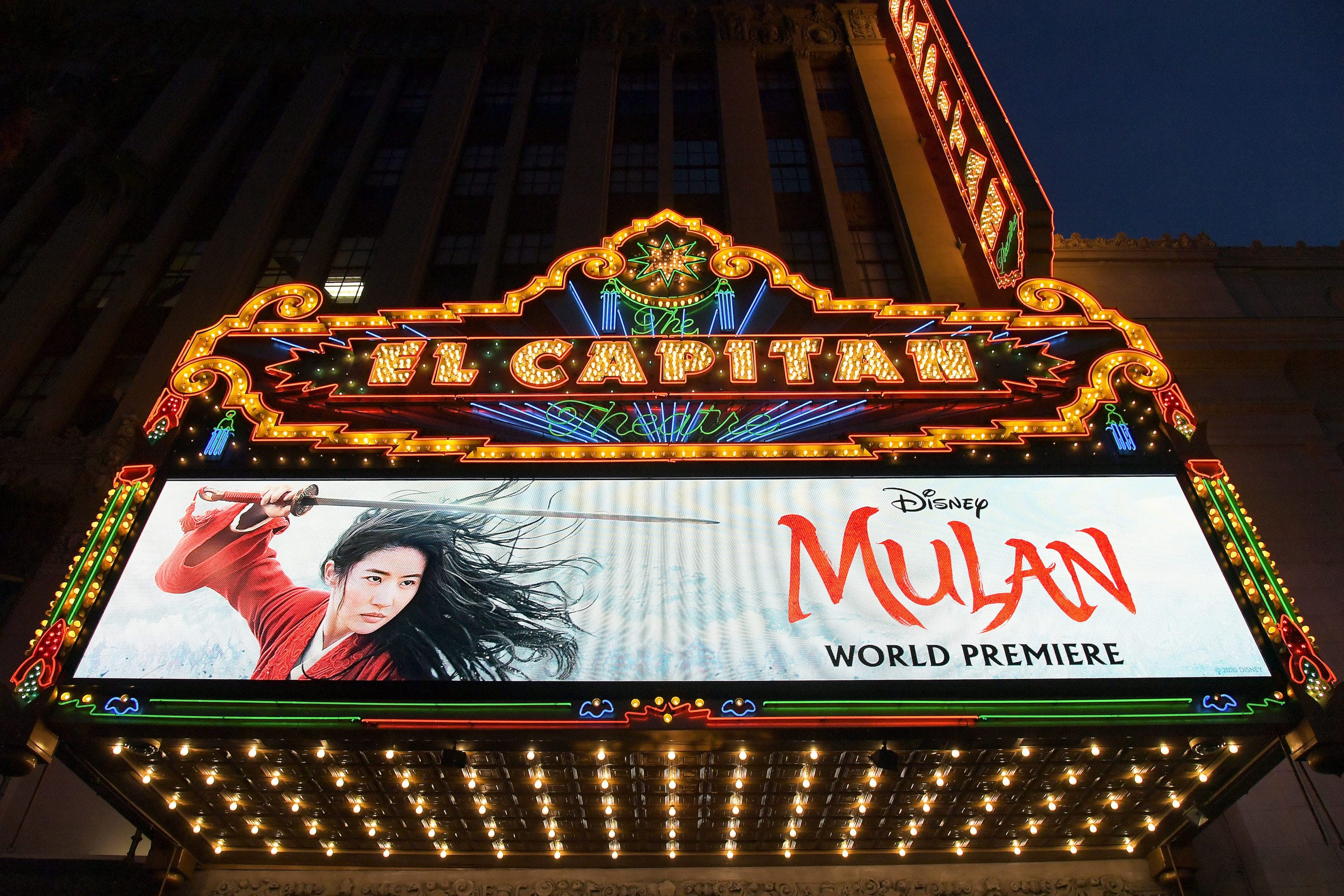 HOLLYWOOD, CALIFORNIA – MARCH 09: View of the marquee at the World Premiere of Disney’s ‘MULAN’ at the Dolby Theatre on March 09, 2020 in Hollywood, California. (Photo by Charley Gallay/Getty Images for Disney)