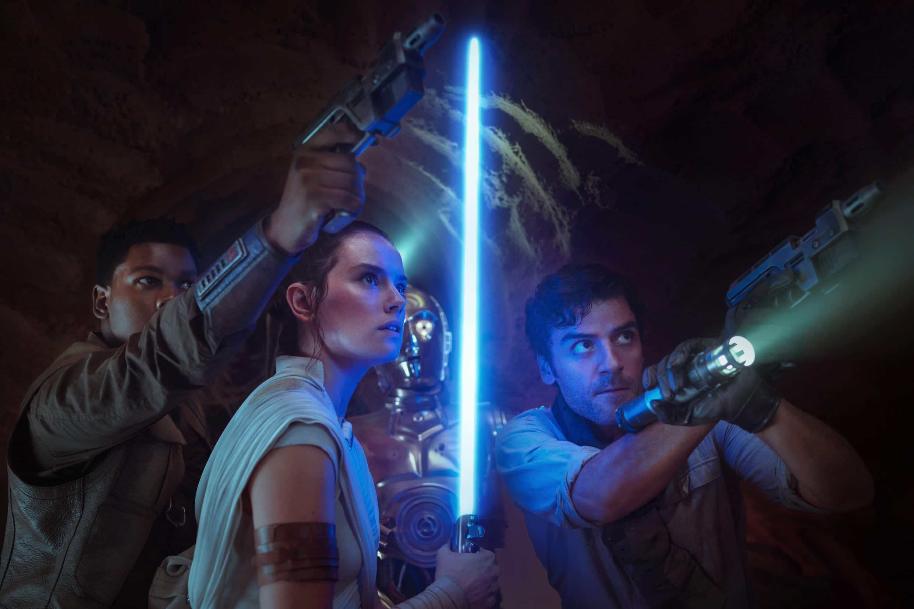 Finn (John Boyega), Poe Dameron (Oscar Isaac) and Rey (Daisy Ridley) in STAR WARS: EPISODE IX.