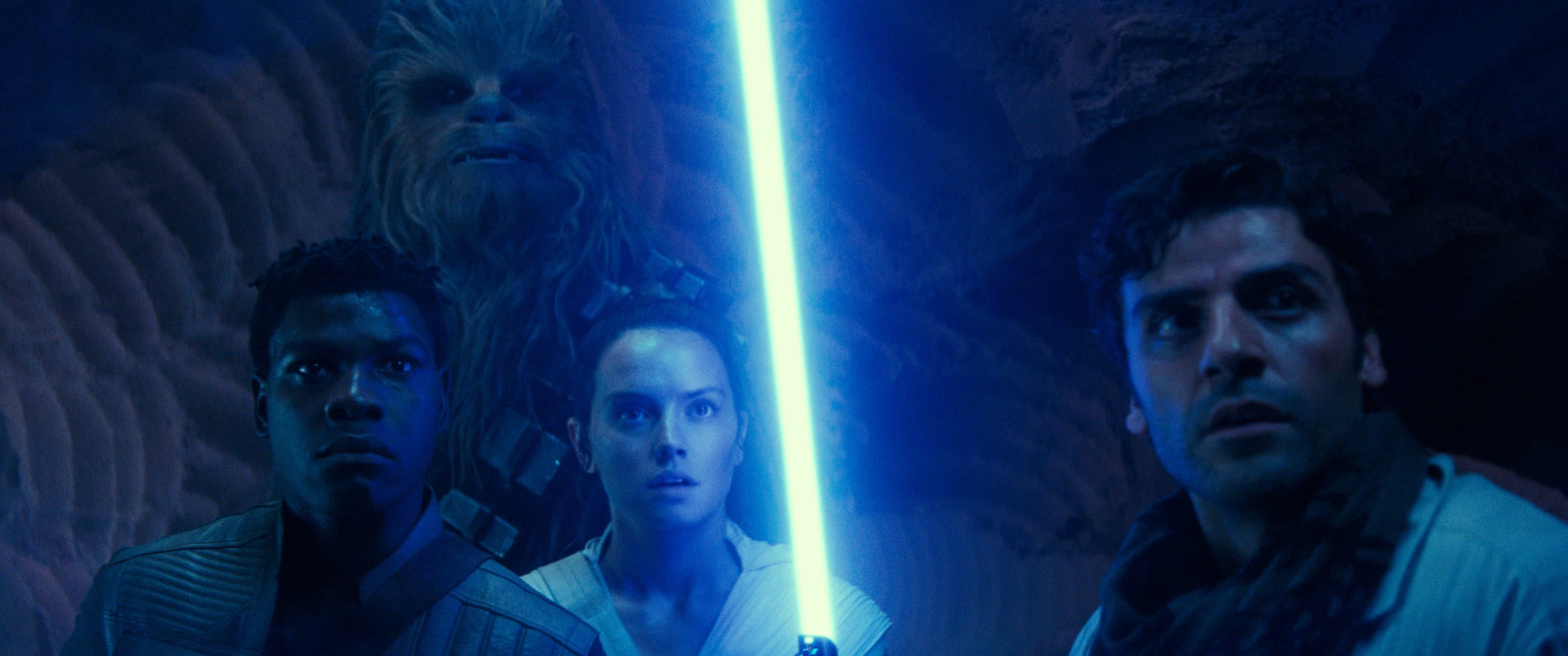John Boyega is Finn, Joonas Suotamo is Chewbacca, Daisy Ridley is Rey and Oscar Isaac is Poe Dameron in STAR WARS: THE RISE OF SKYWALKER.