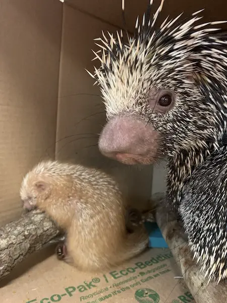 The prehensile-tailed porcupine born Feb. 25, 2020, at Disney’s Animal Kingdom at Walt Disney World Resort in Lake Buena Vista, Fla., is named Shelley. The porcupette was named after Disney Cast Member Shelley, a veterinary services manager who played a significant role in the baby’s birth. The porcupette now weighs more than two pounds. (Disney)
