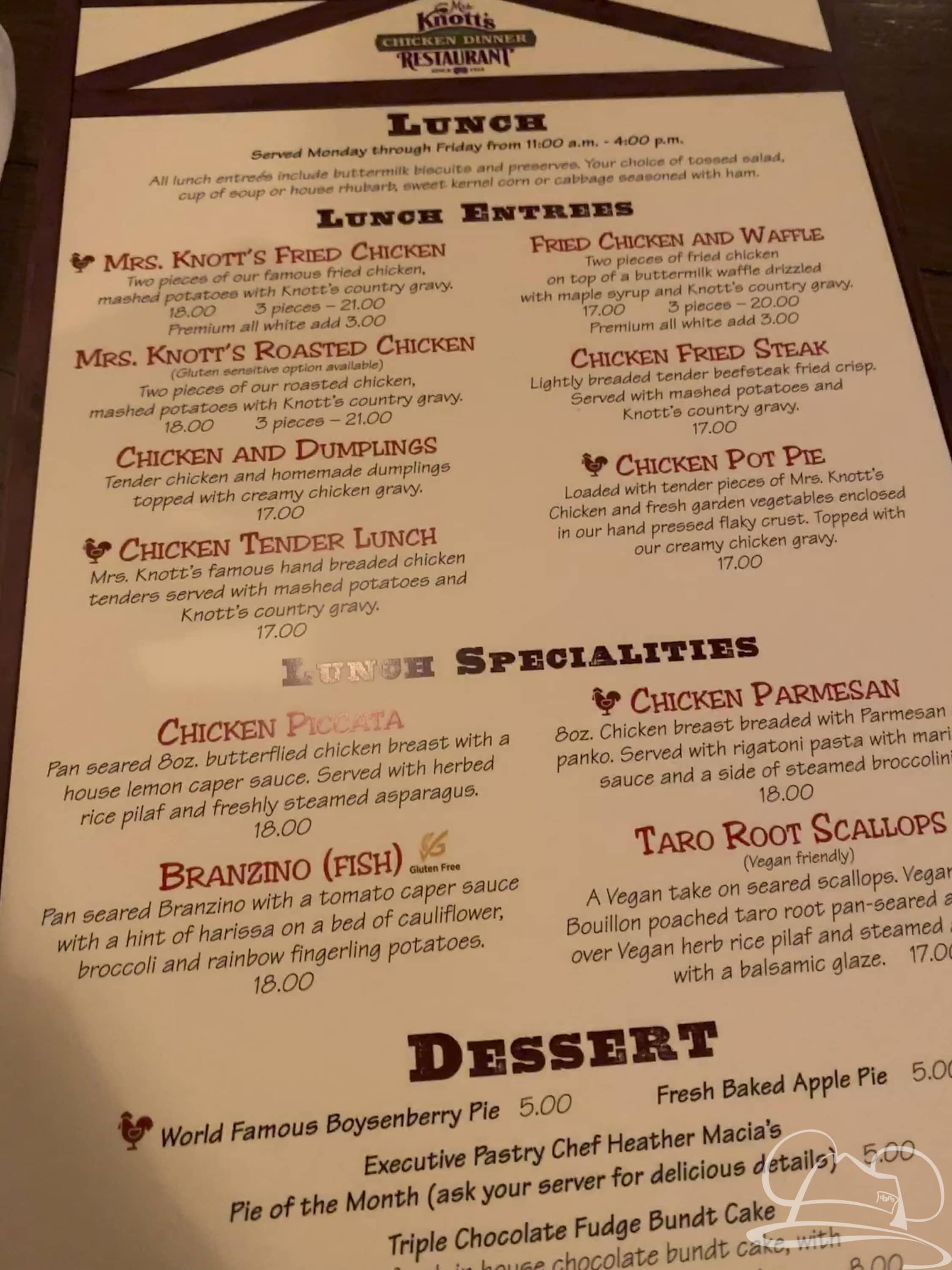 Mrs. Knott’s Chicken Dinner Restaurant has been a large part of the success of Knott’s Berry Farm. Its exclusive recipes have tantalized taste buds for several years and drew guests to the property. It’s what caused the expansion into a theme park. So, it is wonderful to see it open again after a long period of closure due to precautions with the COVID-19 pandemic.