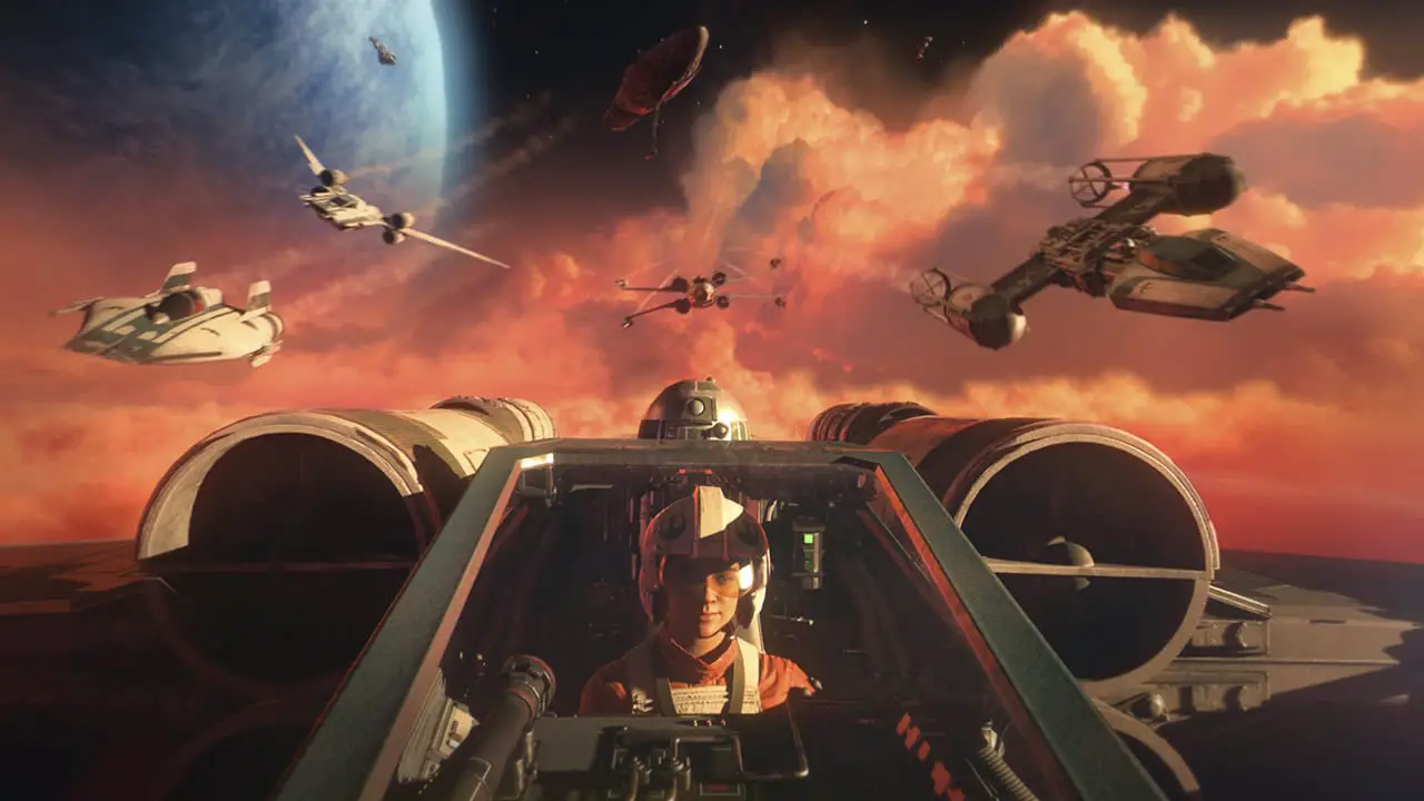 Star Wars: Squadrons will allow players to have first-person and 5v5 multiplayer space dogfights. They will also be able to be a part of massive fleet battles. The events will take place as part of an original story set during the final days of the Galactic Empire and the rise of the New Republic following the events of Star Wars: Return of the Jedi.