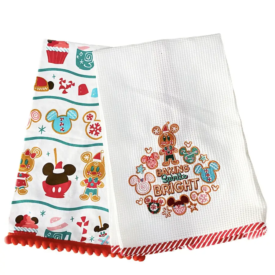 Moving to the kitchen there is a new gingerbread themed baking set that includes a mixing bowl, two spatulas, and two metal gingerbread cookie cutters as well. All of these are themed to gingerbread and Mickey and Minnie! There are also some towels that fit the theme perfectly as well.