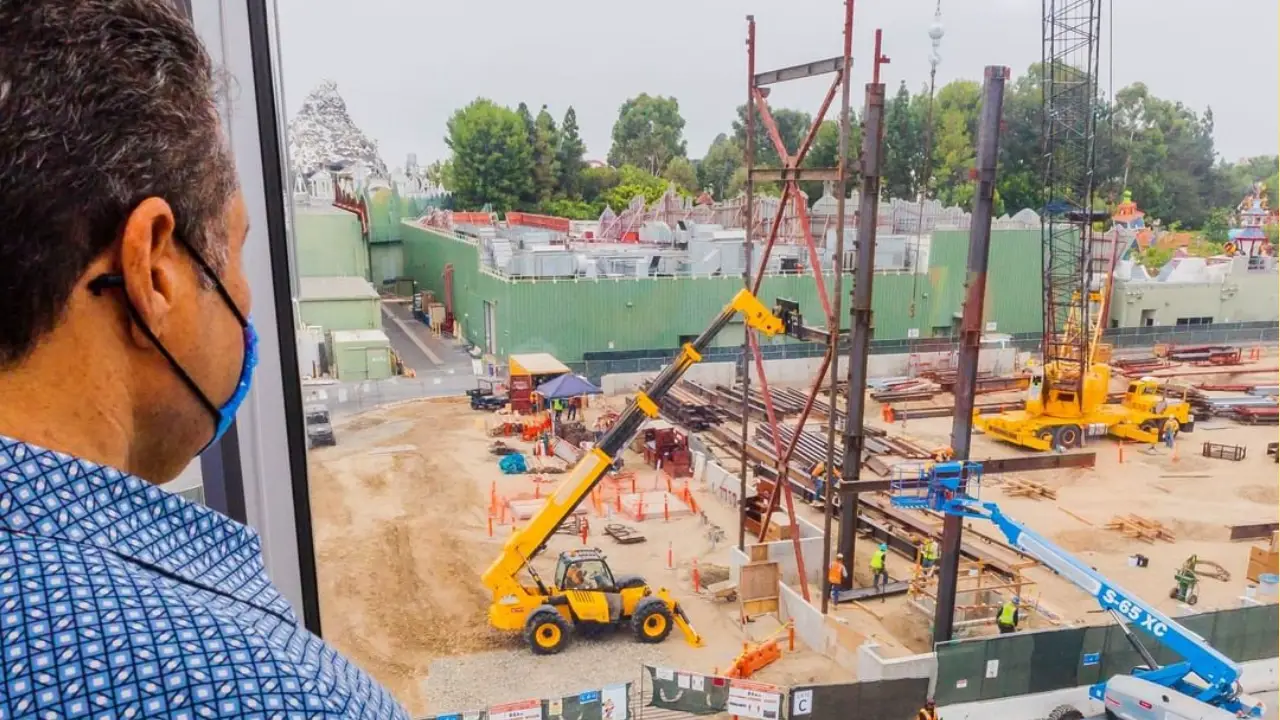 Though the work has been delayed, they’re not just getting started! Ken Potrock announced that he watched the construction crews place the first vertical steel beam for the attraction from his window at Team Disney Anaheim. In the video, it’s very fun to get a look at the rest of Disneyland Park, like the Matterhorn mountain standing tall in the distance.