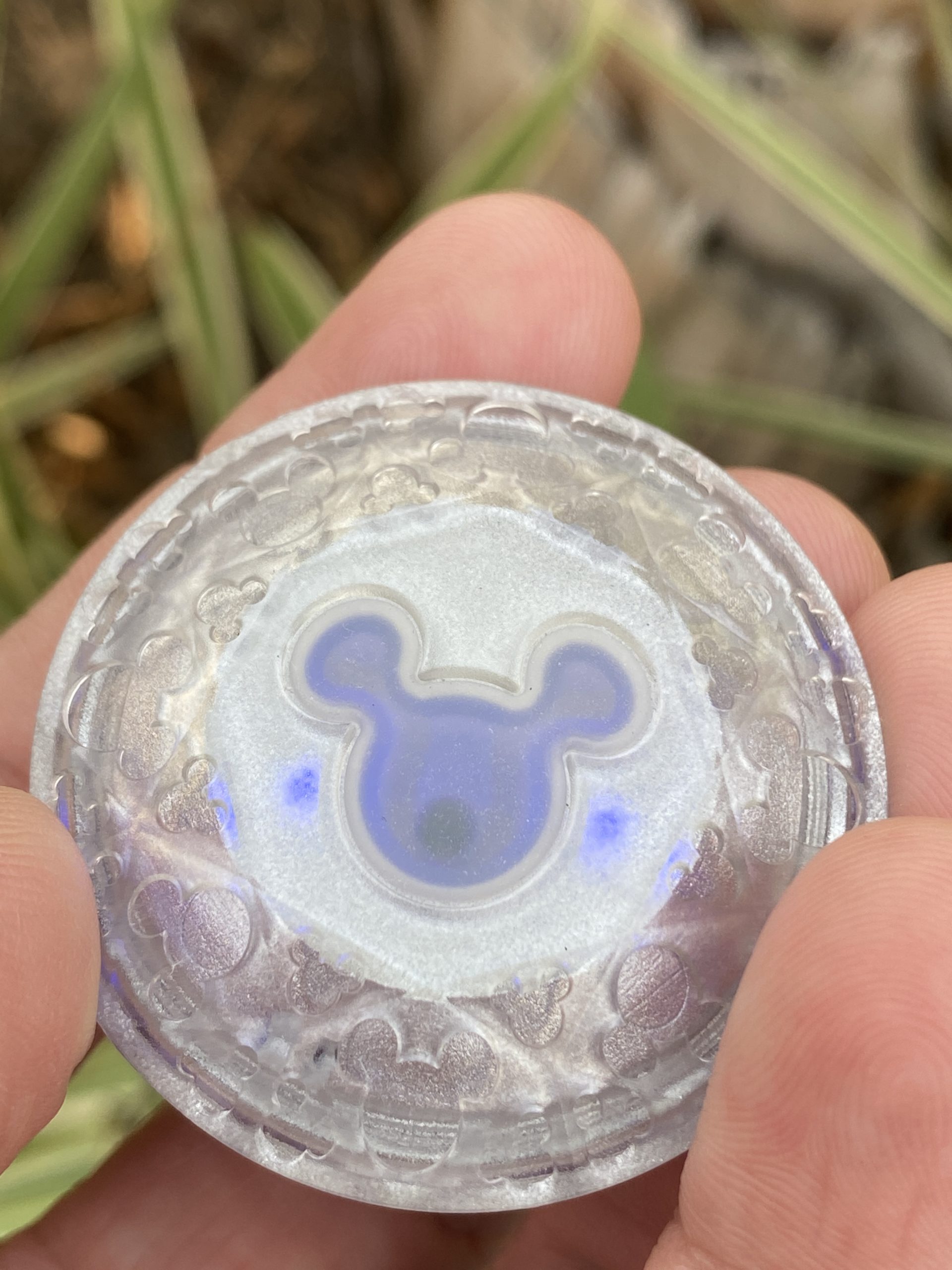 Lastly, a special diamond glow cube was offered as well, which is reminiscent of other cubes found in drinks inside the parks. It lights blue and features the Mickey silhouette icon on the bottom.