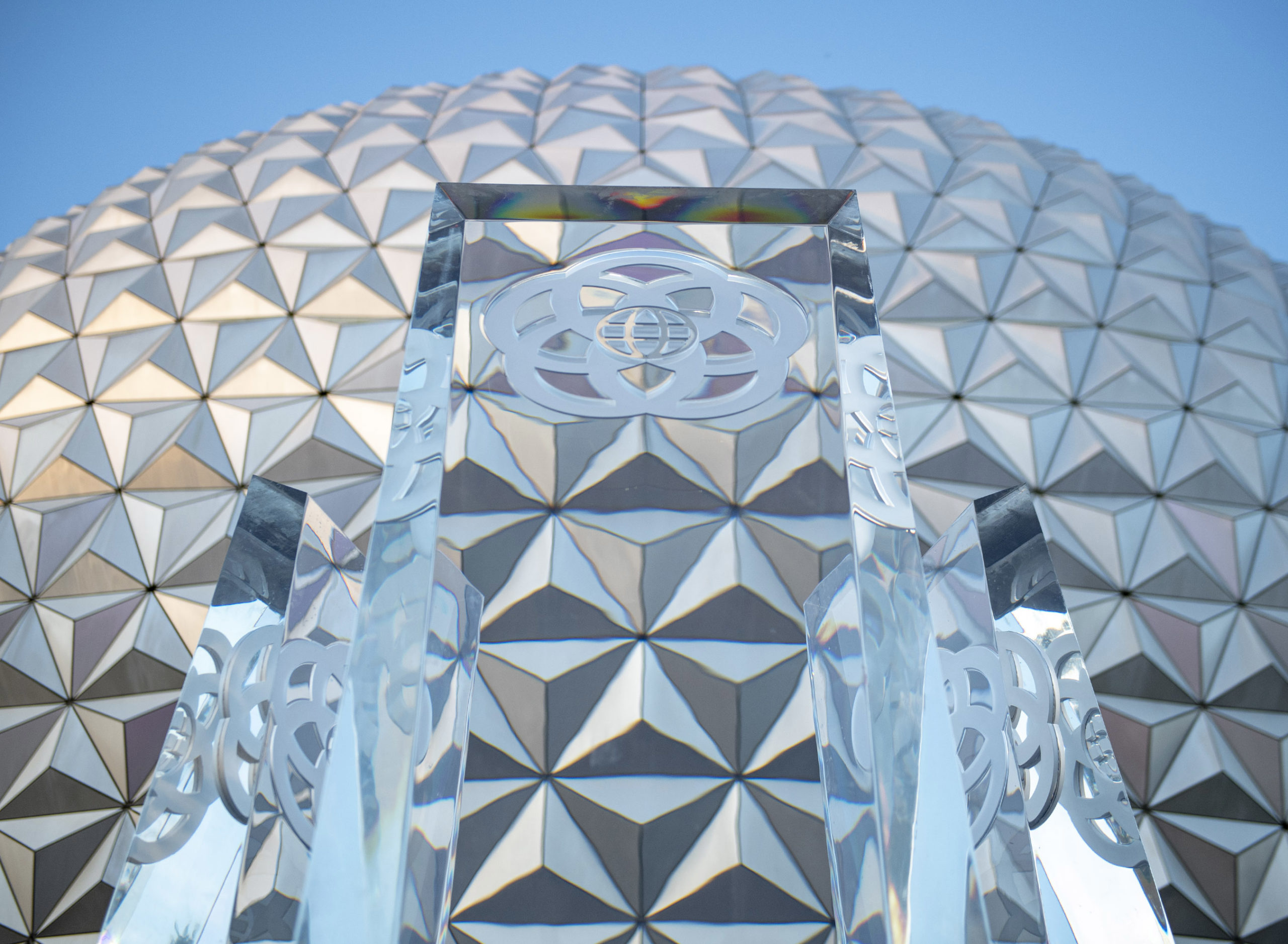 Three majestic new pylons were installed in the main entrance plaza of EPCOT at Walt Disney World Resort in Lake Buena Vista, Fla., Aug. 11, 2020, as part of the park’s ongoing, multiyear transformation. (David Roark, photographer)