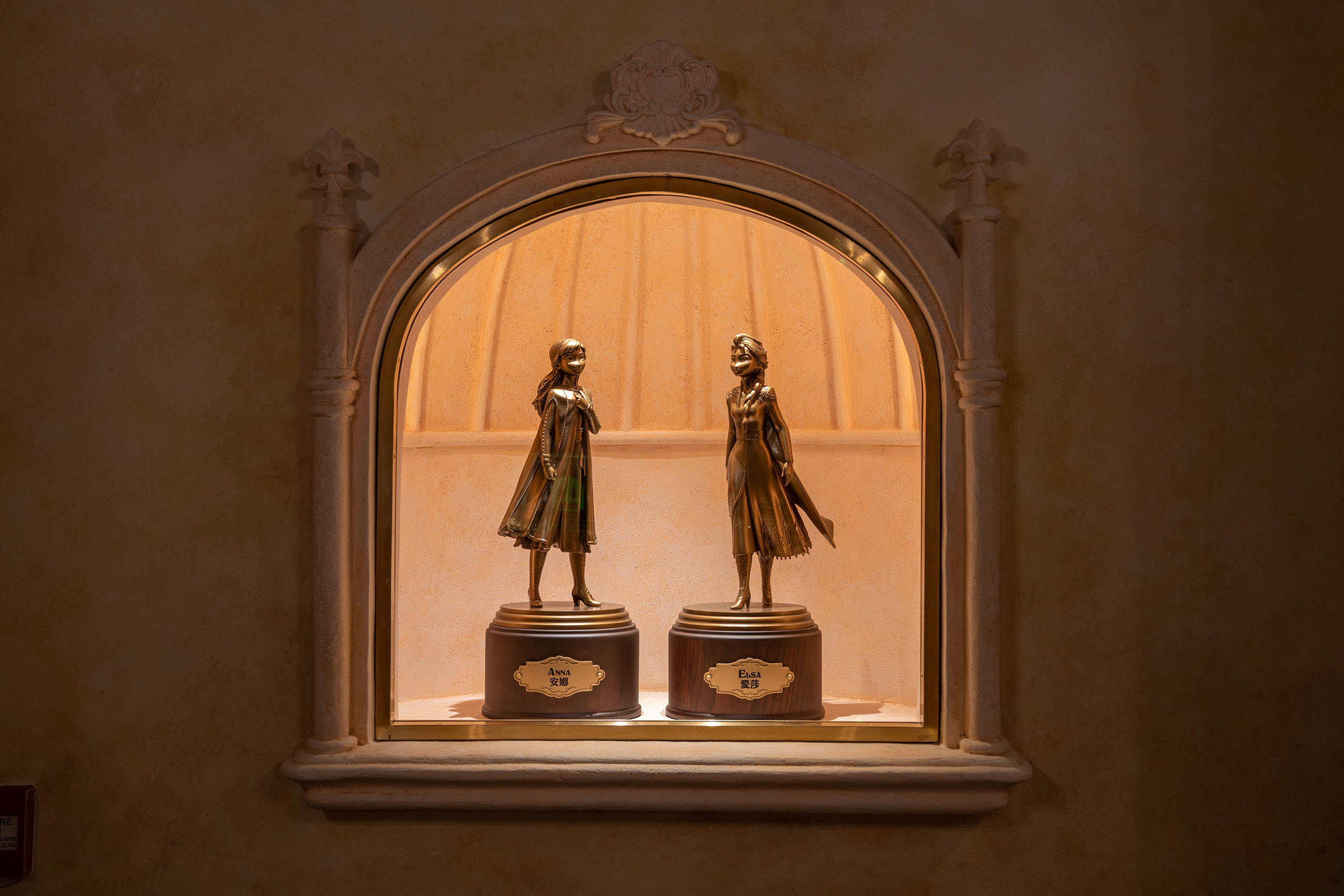 - French flourish patterns also decorate the tower, paying tribute to her heritage.Anna and Elsa: Elsa is naturally regal and composed, and has learned to embrace her magic power as well as the love of her adoring sister Anna.