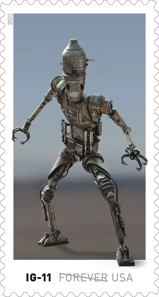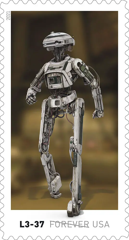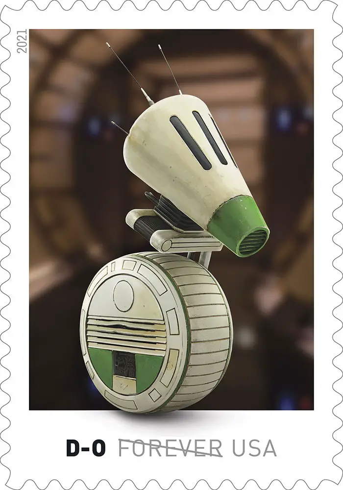 The collection of Star Wars droids stamps will be arriving in the spring of 2021. They will come on a pane of 20 stamps. They will feature droids from across the Star Wars galaxy including films and animated shows. Among the droids, fans will see IG-11, R2-D2, K-2SO, D-O, L3-37, BB-8, C-3PO, a Gonk droid, 2-1B surgical droid, and Chopper.