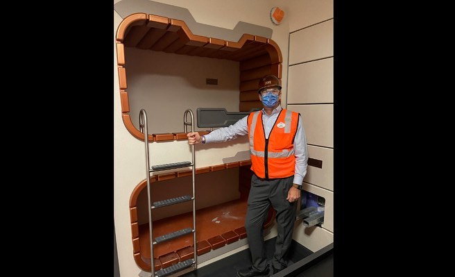 Walt Disney World President Jeff Vahle gave a sneak peek of a cabin in the Star Wars: Galactic Starcruiser. In a post on Instagram, Vahle revealed that he and Josh D’Amaro, Chairman of Disney Parks, Experiences and Products, recently toured the Starcruiser. Vahle shared that they visited The Atrium and also visited The Bridge while on their tour. Take a look at the photos Vahle shared from the cabin of the Star Wars: Galactic Starcruiser here: