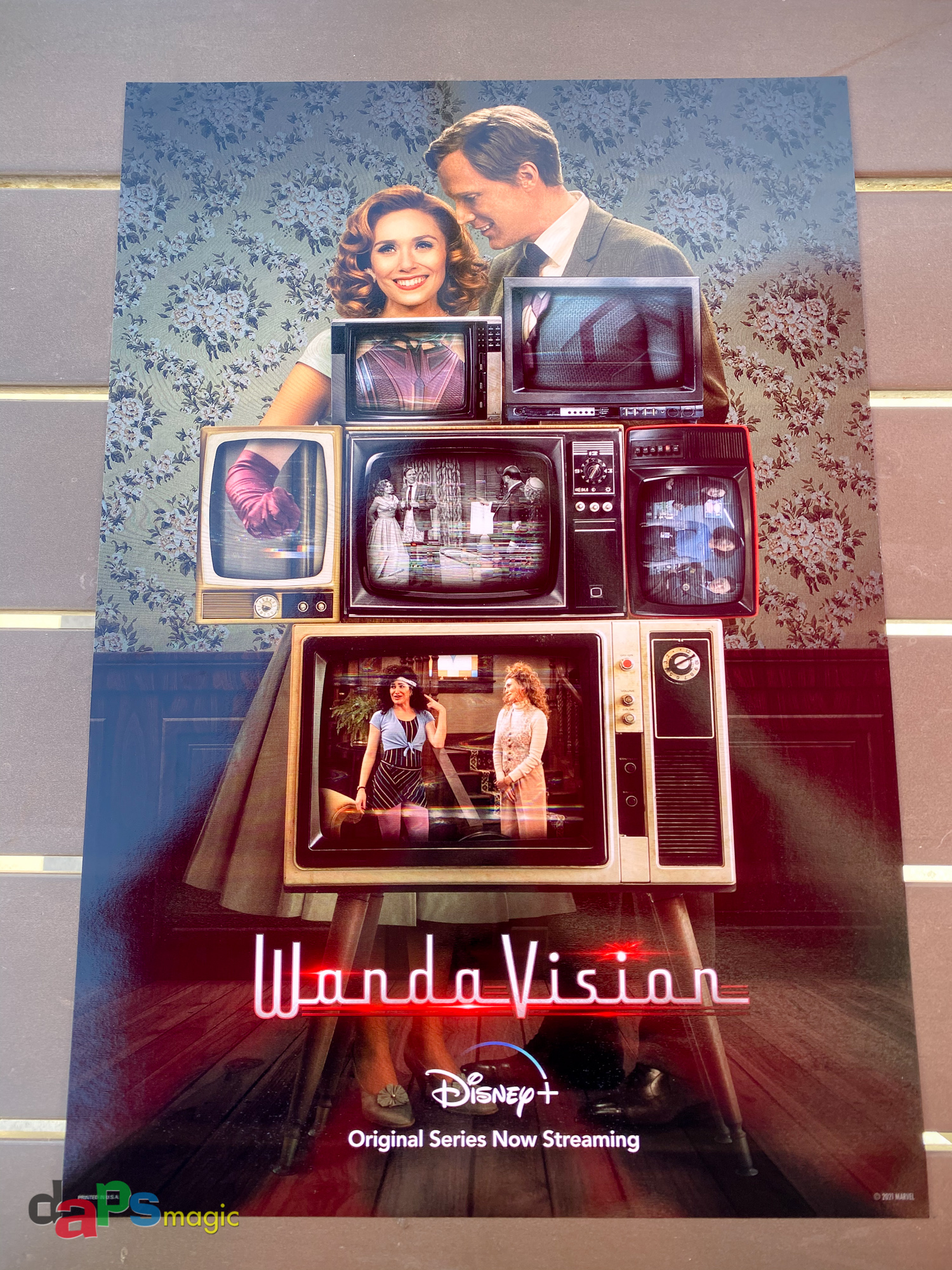 Just outside of the photo op, Marvel merchandise is being sold. Also, for Legacy Passholders WandaVision posters were being given out. To get a poster, an Annual Pass and photo i.d. had to be shown to cast members. This is one of the perks currently being offered to Legacy Passholders as the Disneyland Resort transitions to a new membership system.