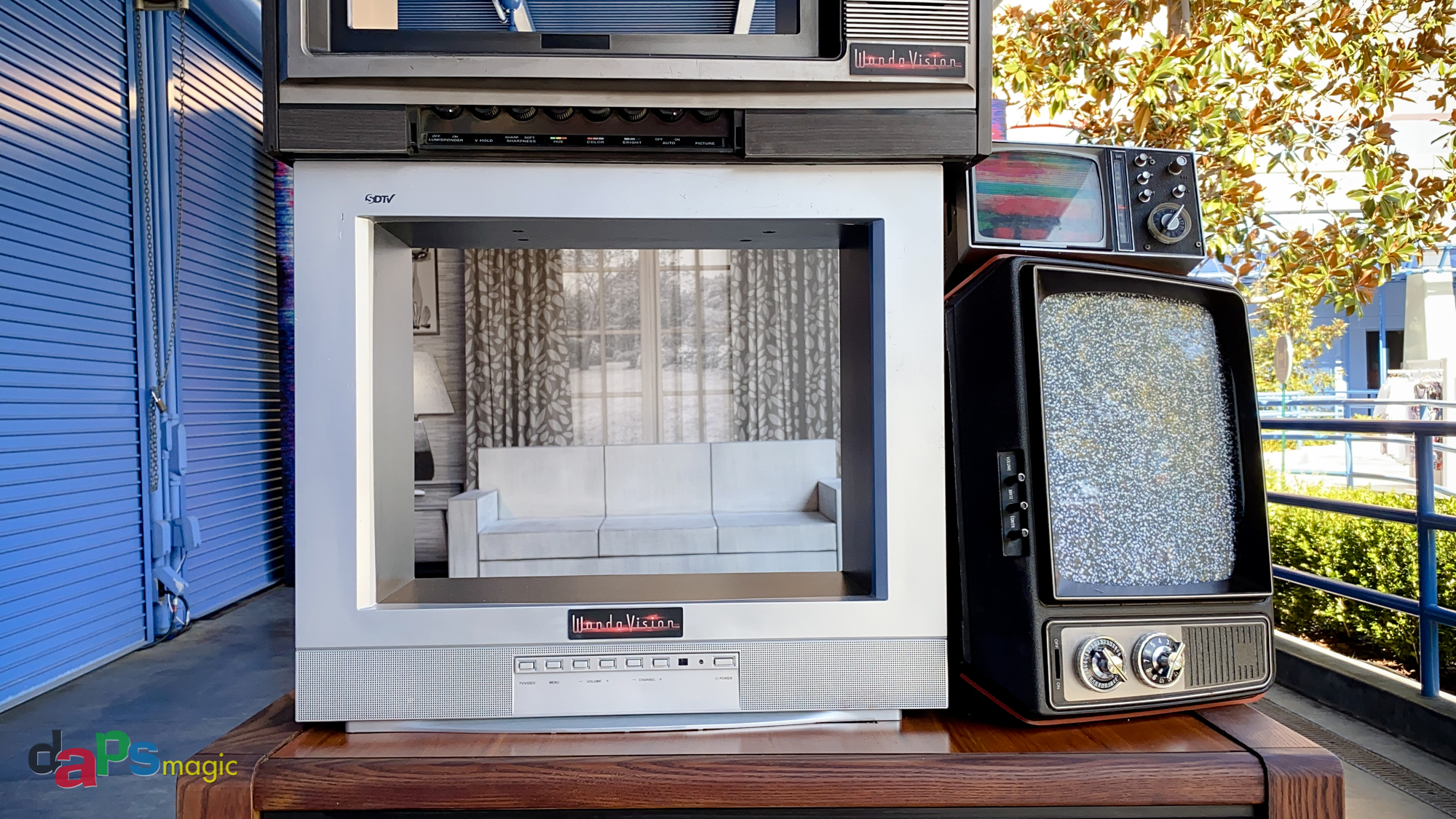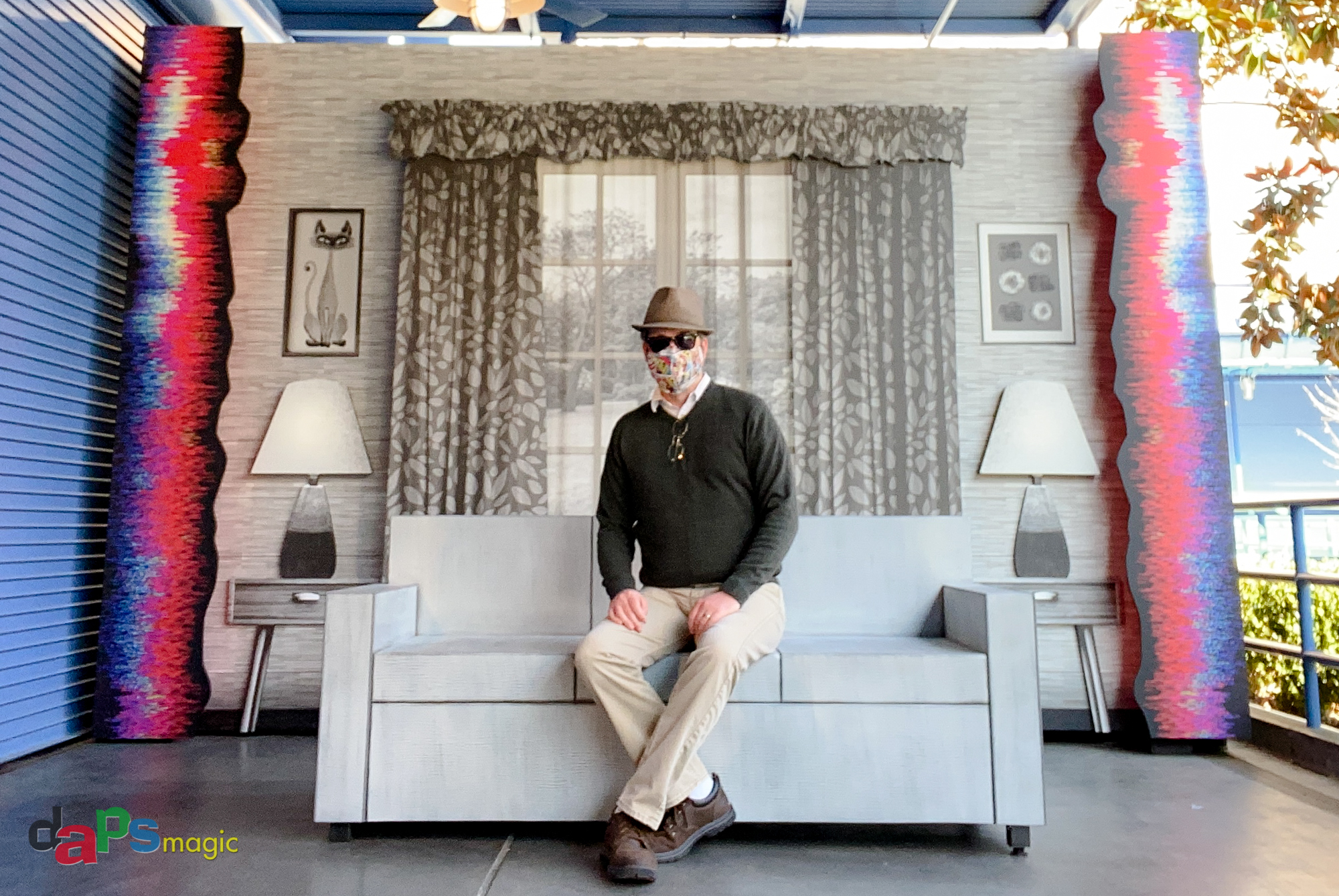 Today the Disneyland Resort unveiled a new photo op for Legacy Passholders. The photo location is themed to WandaVision and allows for photos to be taken both through a television screen/frame or behind the television on Wanda and Vision’s couch. The location recreates the early episodes of WandaVision, which is currently streaming on Disney+. For Legacy Passholders to experience this, they simply had to show their old Annual Pass and also a photo i.d. It will be opened to all guests on February 6, 2021.