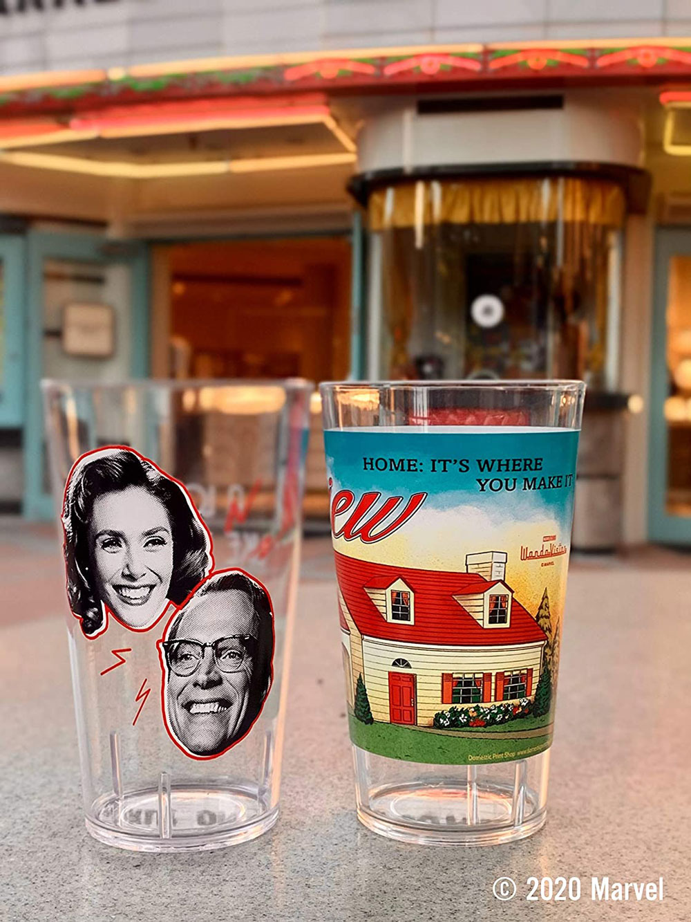 On Amazon, you can find the WandaVision inspired glasses that feature the beloved characters and their home. You can find them for sale here, but they are currently out of stock with no restock date.
