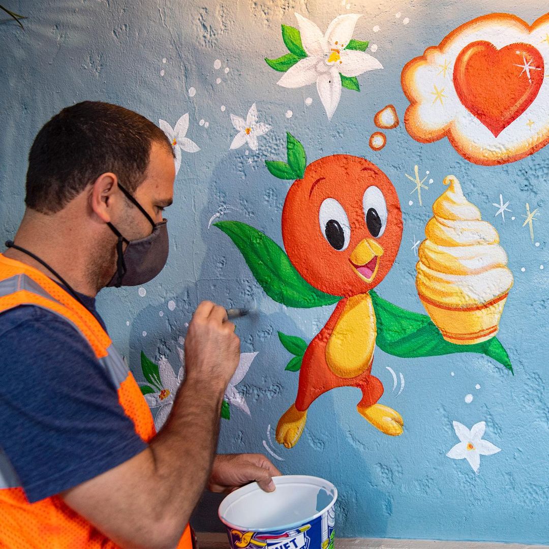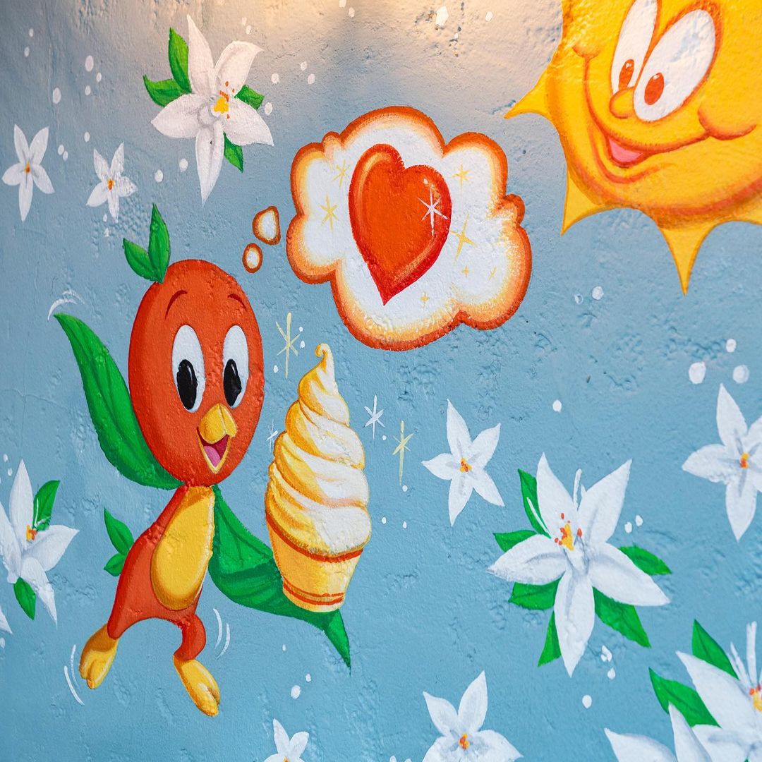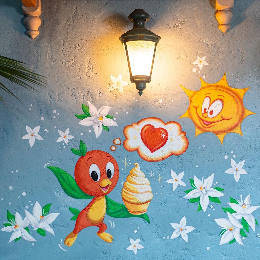 The mural, which you can see in the tweet from Disney Parks below, is located in Adventureland in Magic Kingdom. This allows guests to order their Citrus Swirl and then travel just a few steps to snap a photo with Orange Bird! You can see more about the design and painting process of the mural on Imagineer Zach Riddley’s Instagram here.