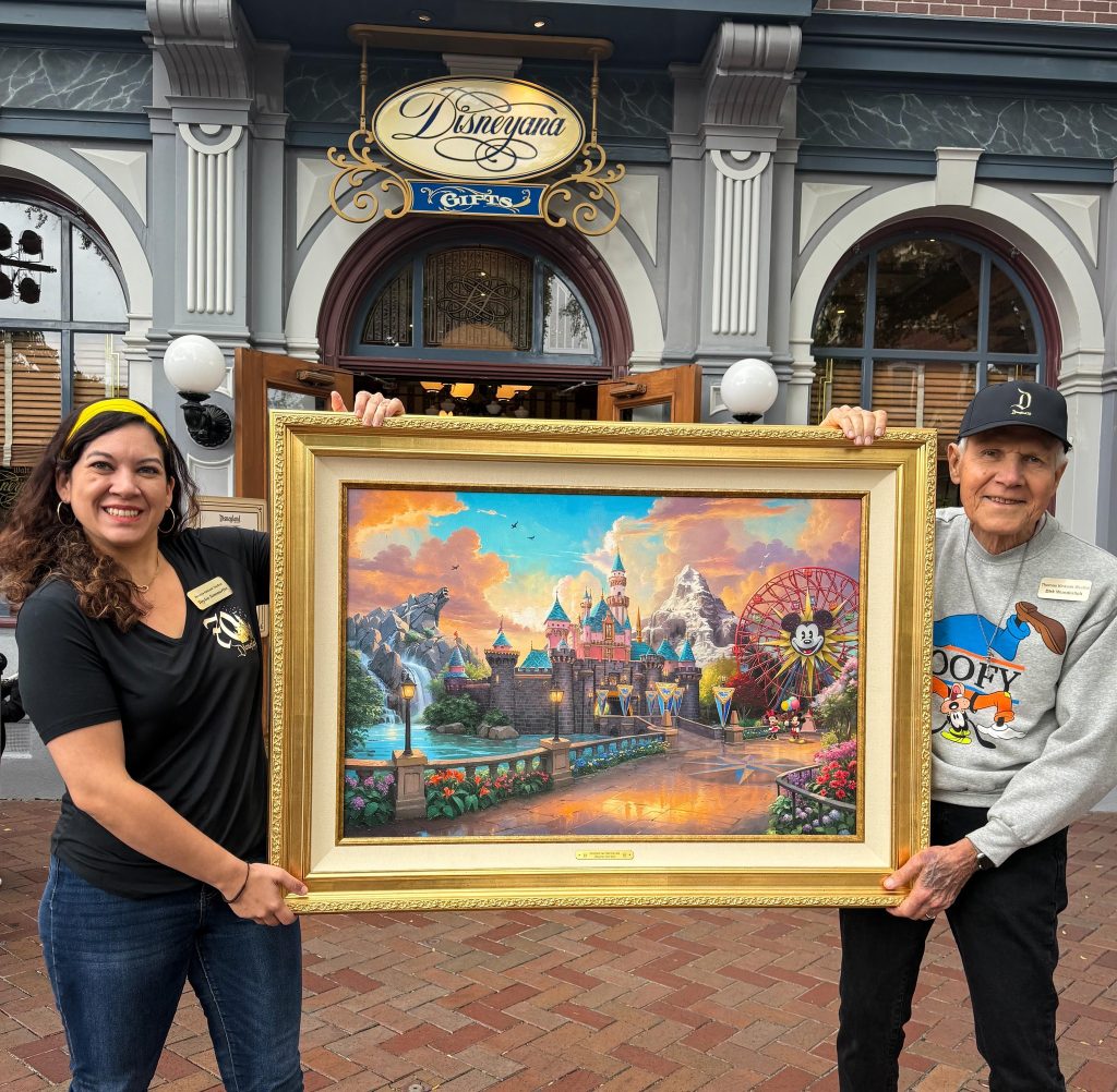Disneyland Resort continues its Disneyland Resort 70th Celebration. As the celebration continues, there are many different special moments and things to be seen and experienced. One of these will be at Disneyana and include the Thomas Kinkade piece, Disneyland 70th Anniversary – Sleeping Beauty Castle. From September 25-28, guests can stop by Disneyana to see this piece and also meet Thomas Kinkade artists Dirk Wunderlich, Sam Kennedy, and Taylor Summerlin.