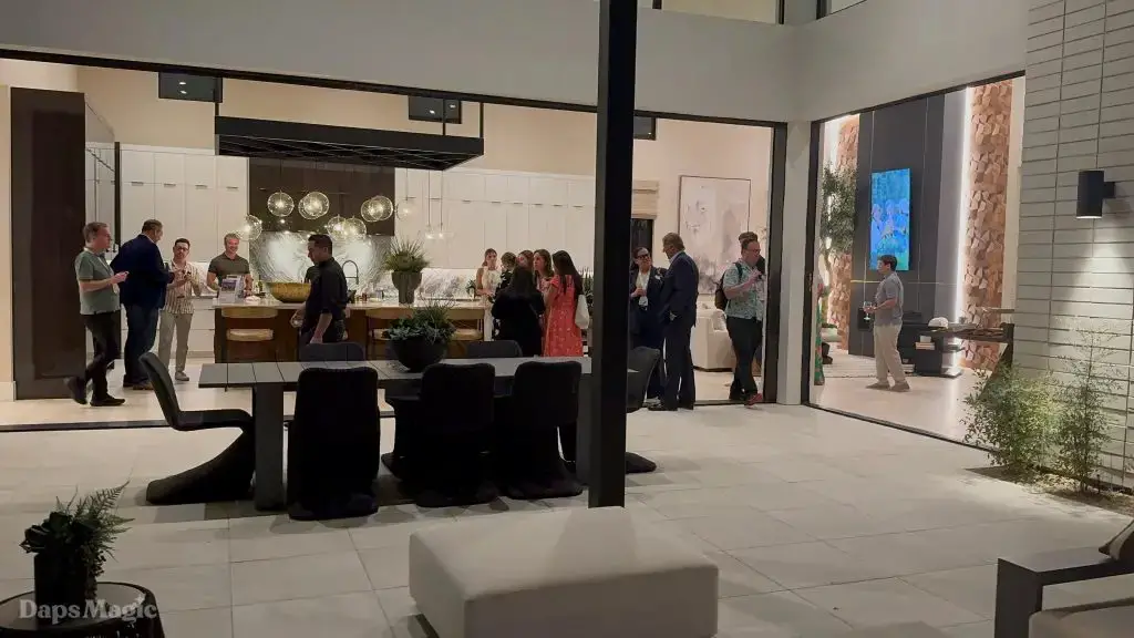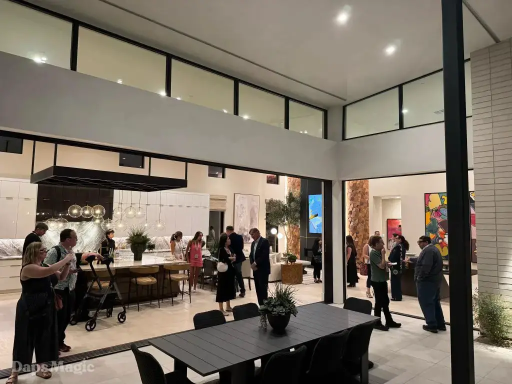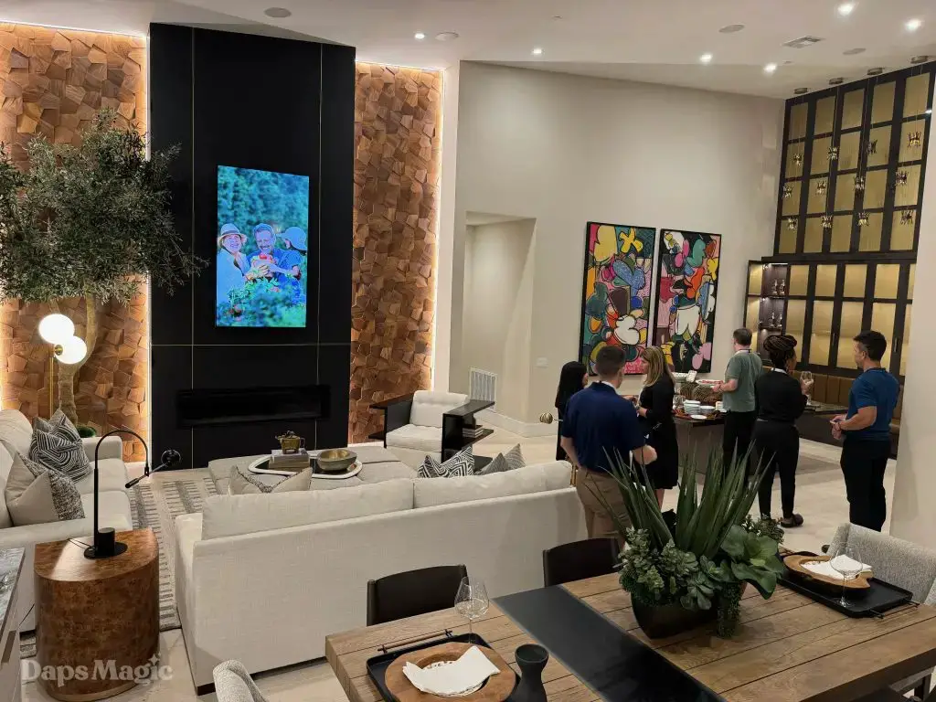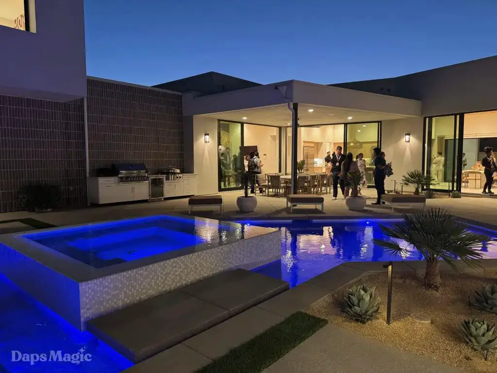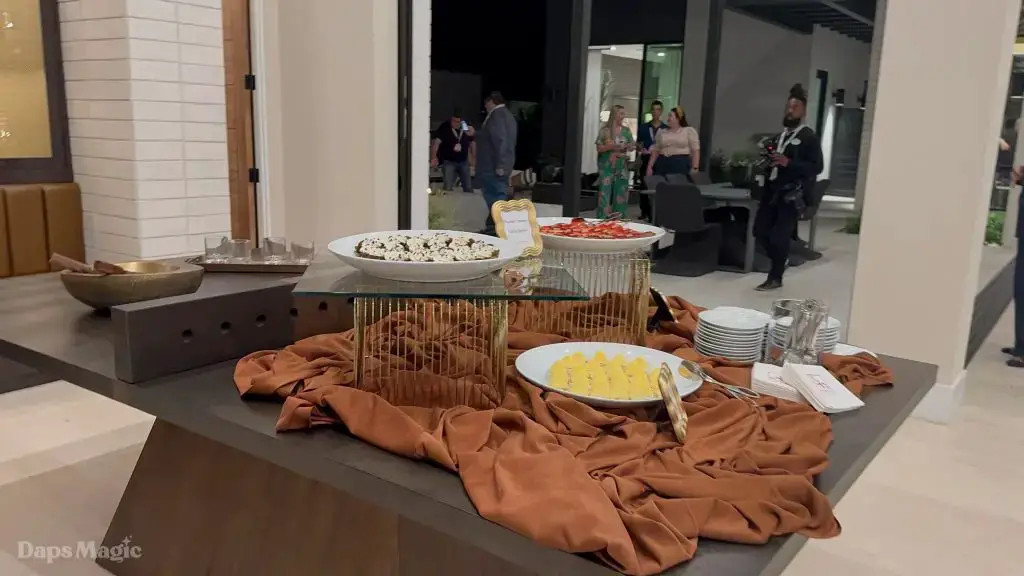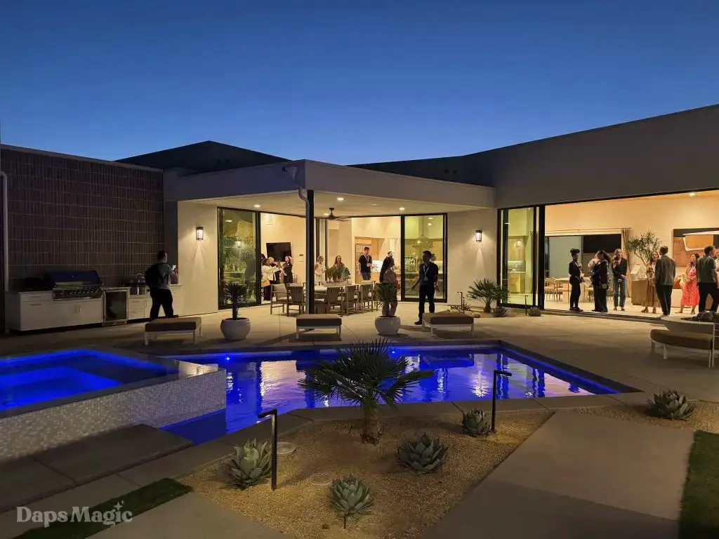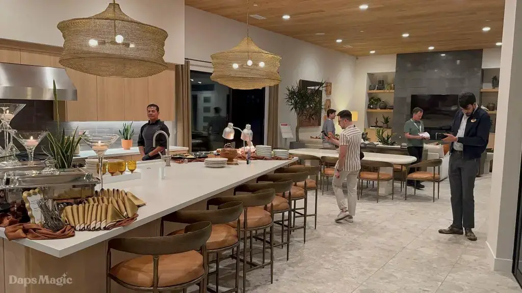 On the evening of October 22nd, some members of the media and other special guests were invited to enjoy a progressive dinner through three houses at Cotino. Daps Magic was invited to be one of the members of the media that was honored to be included in this tour. The evening began with appetizers at the mid-century modern Atelier model from Shea Homes. After a short walk to Woodbridge Pacific Group’s contemporary Westwind model, dinner was served. The evening’s events concluded with dessert at the Canvas model from Davidson Communities. Through the course of this evening, there was plenty of time to enjoy exploring each house and also get a feel for what it would be like to enjoy an evening with friends at each location.