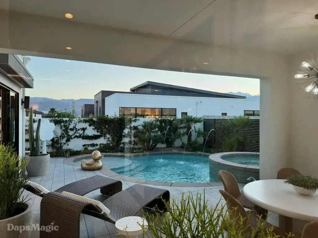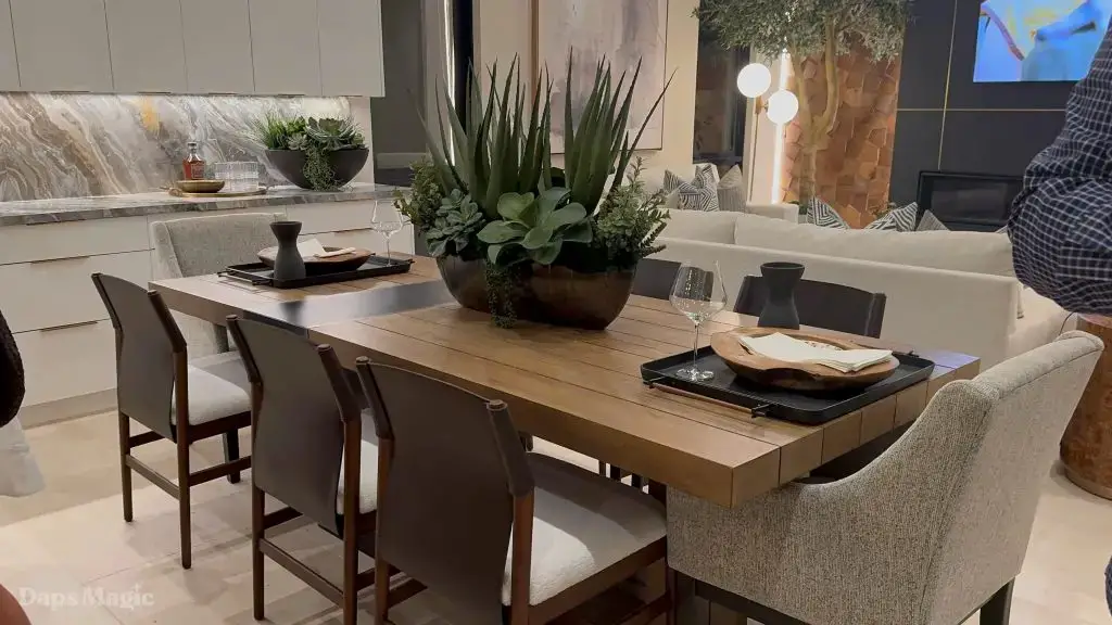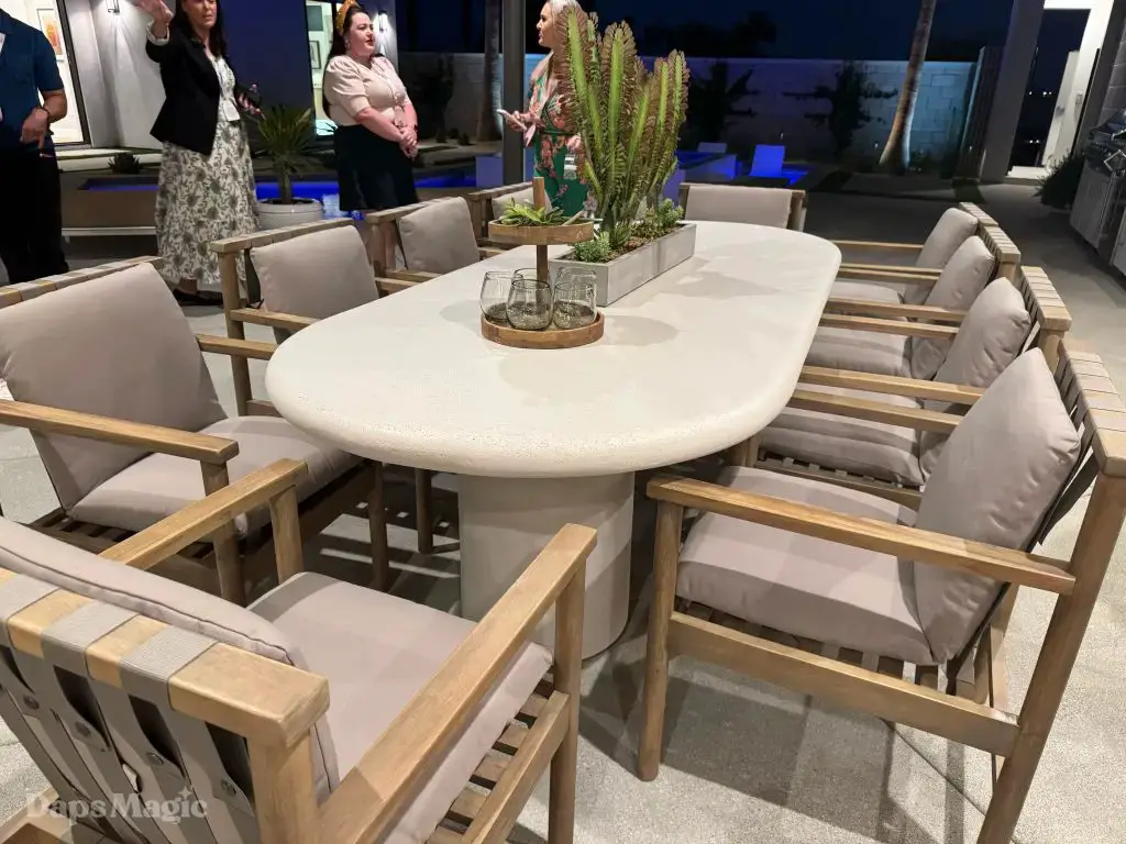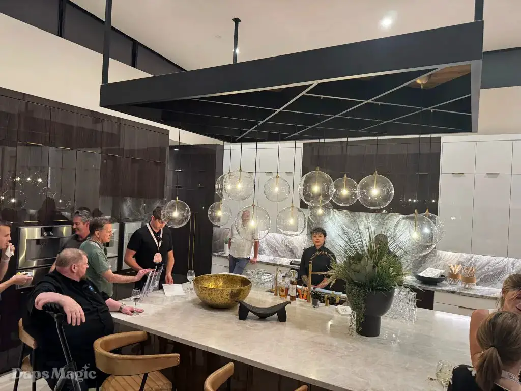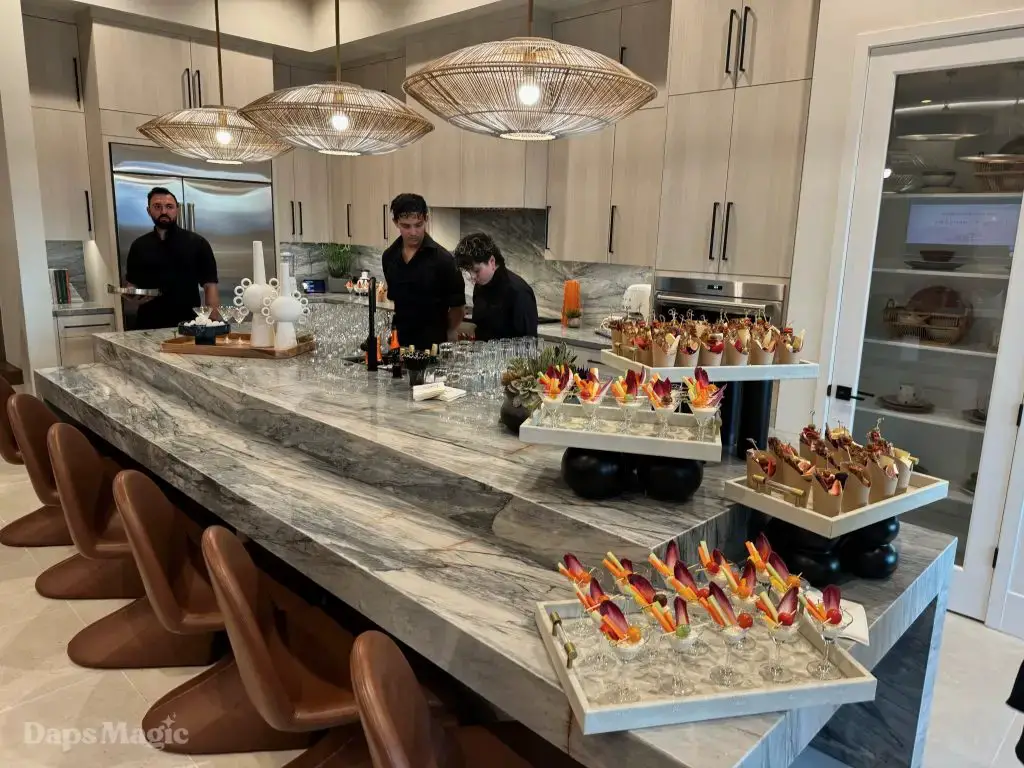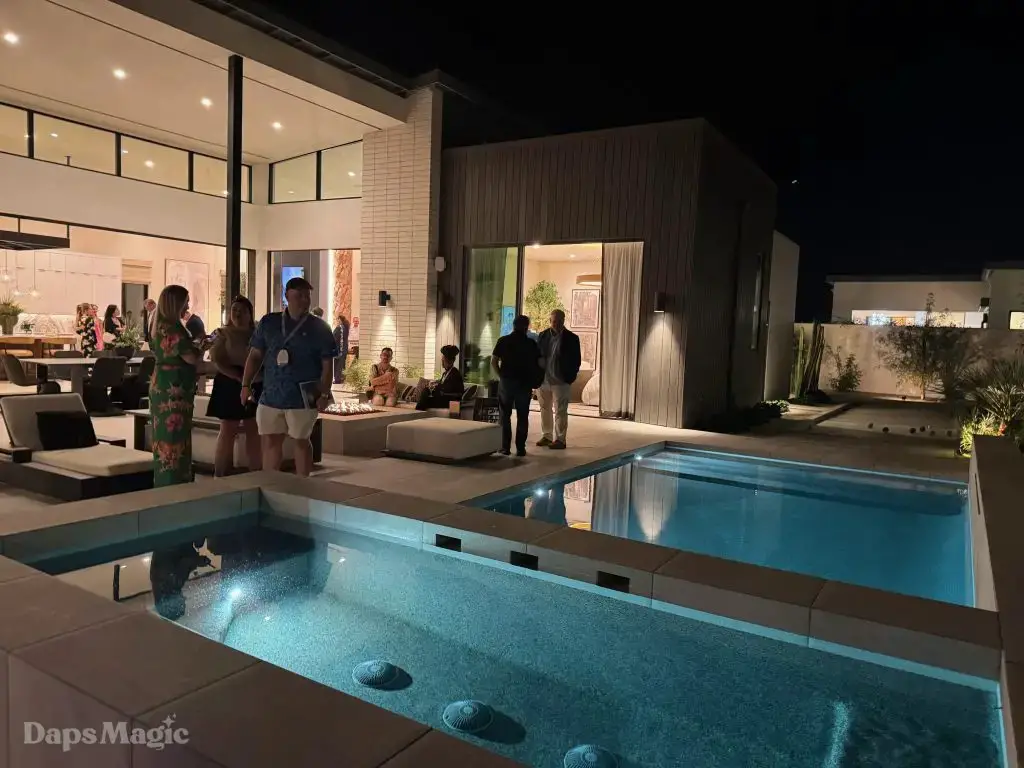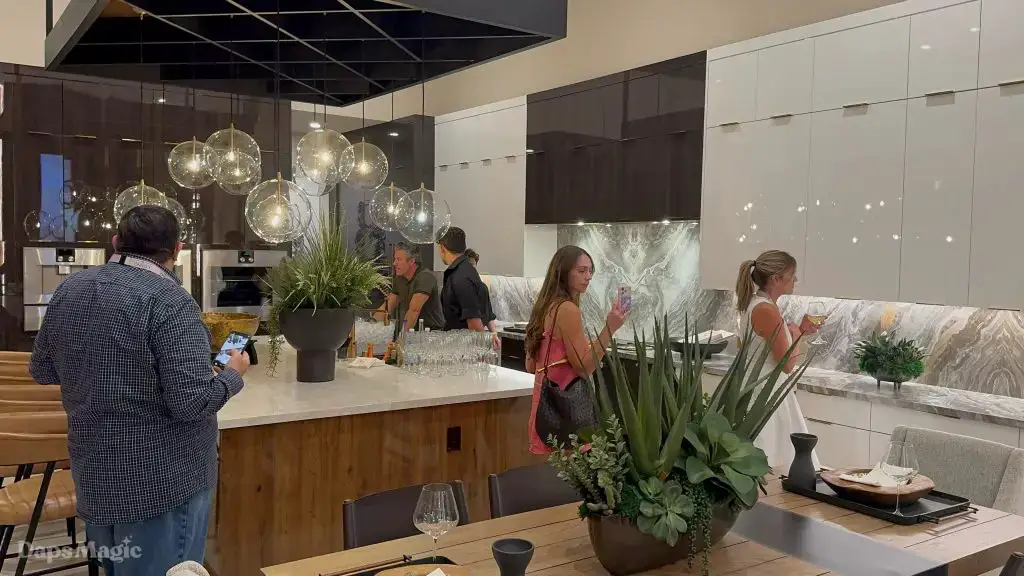 On the evening of October 22nd, some members of the media and other special guests were invited to enjoy a progressive dinner through three houses at Cotino. Daps Magic was invited to be one of the members of the media that was honored to be included in this tour. The evening began with appetizers at the mid-century modern Atelier model from Shea Homes. After a short walk to Woodbridge Pacific Group’s contemporary Westwind model, dinner was served. The evening’s events concluded with dessert at the Canvas model from Davidson Communities. Through the course of this evening, there was plenty of time to enjoy exploring each house and also get a feel for what it would be like to enjoy an evening with friends at each location.