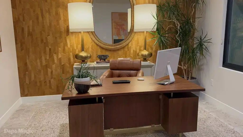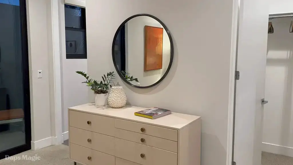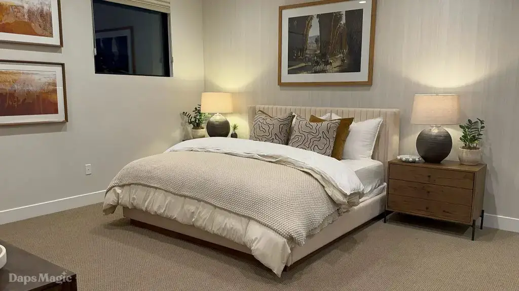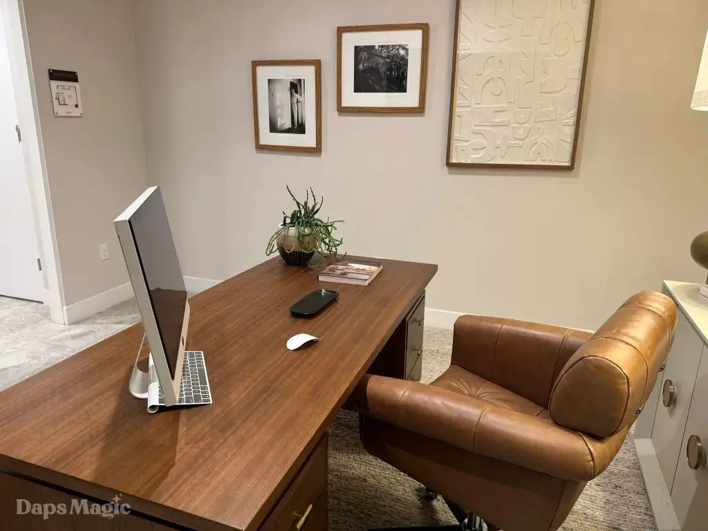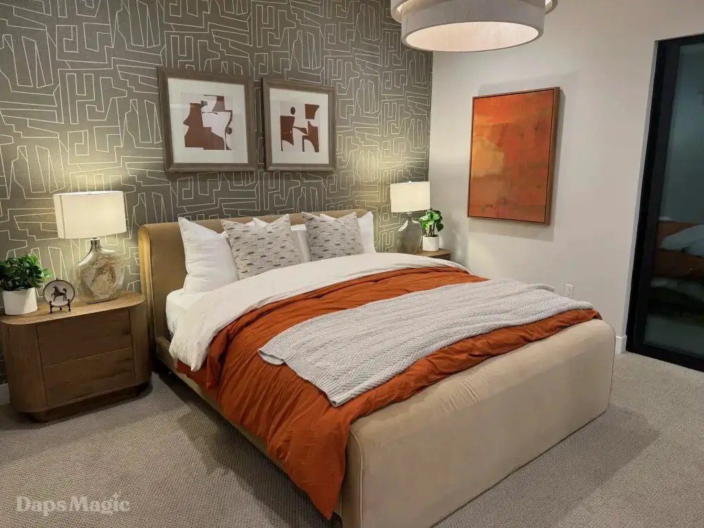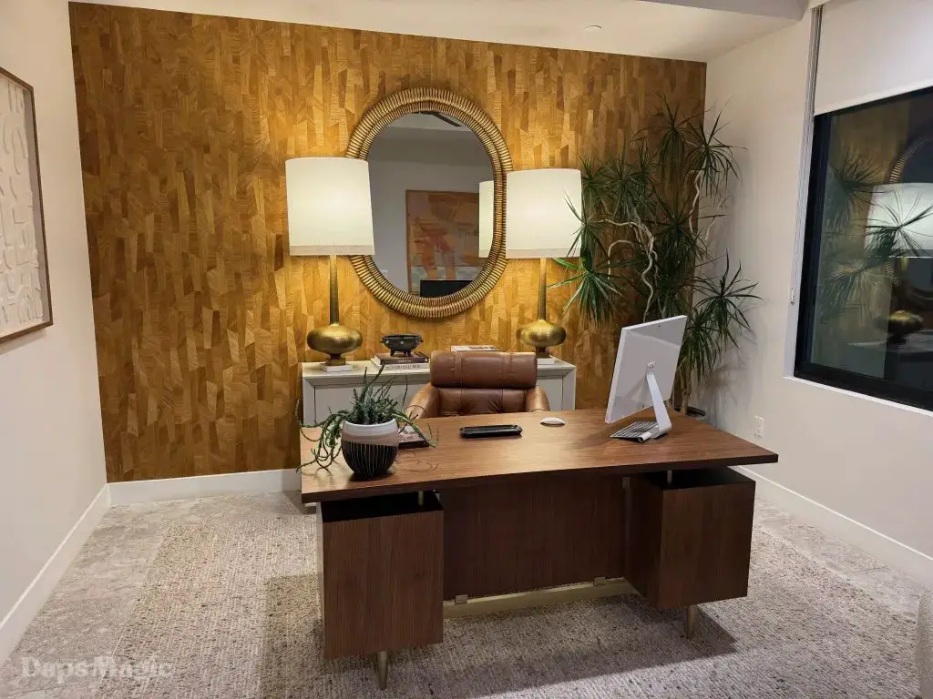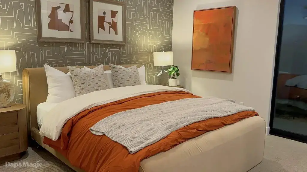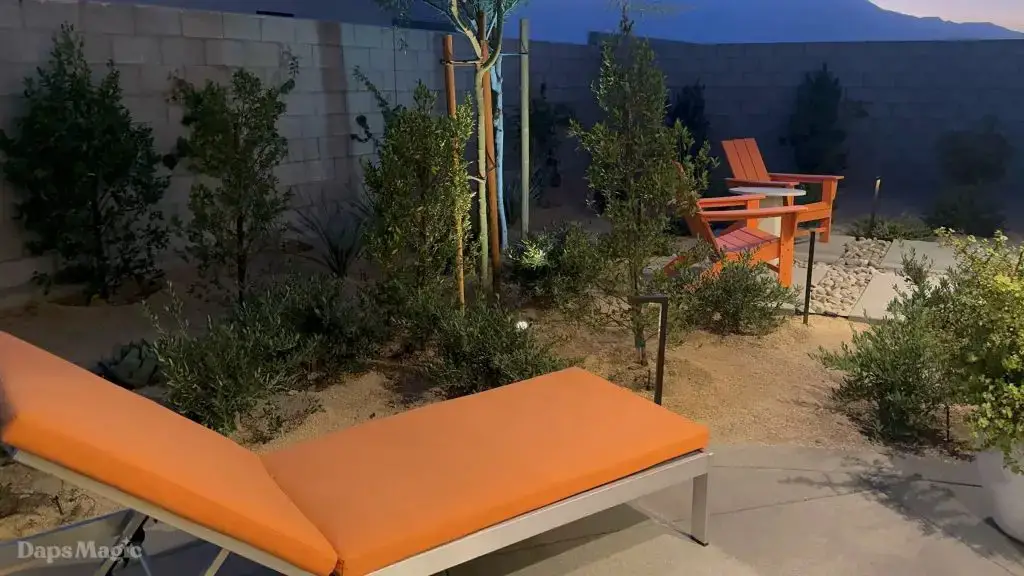 The next stop was the Westwind Model from Woodbridge Pacific Group. Just a quick walk down the street, the sun was setting as the group made its way for dinner at this house. As the sunlight glowed behind the mountains, the whole community felt magical. The area is surprisingly quiet. For as many businesses and houses that are in the general area outside of Cotino, you’d never know. It really is a peaceful place, which I think is a huge selling point in itself. The house itself was really impressive. This house was on a bigger lot and was larger than the first house we visited. It also was more spread out. While it was very different, it also felt like it came from the same community as the first one. There were a lot of features to be found throughout this house. There was a lovely office just inside the front door. On the other side of the entry way, there was a suite that is probably meant to be the primary one. It had a MASSIVE closet, an incredible bathroom (also very large), and a lovely bedroom. Both the bathroom and bedroom had views of the lovely backyard deck and pool. This also had a washer and dryer included in this suite.