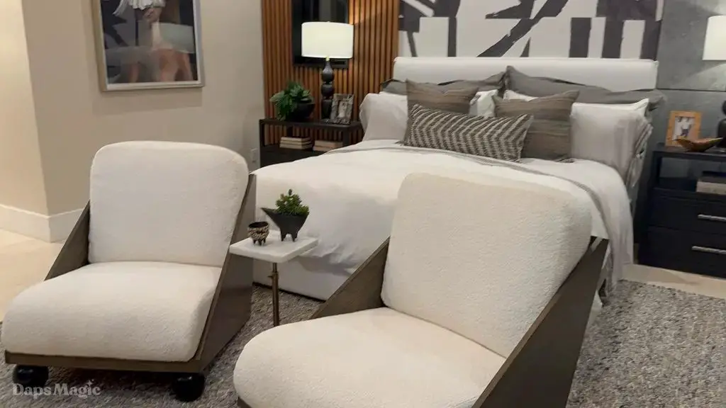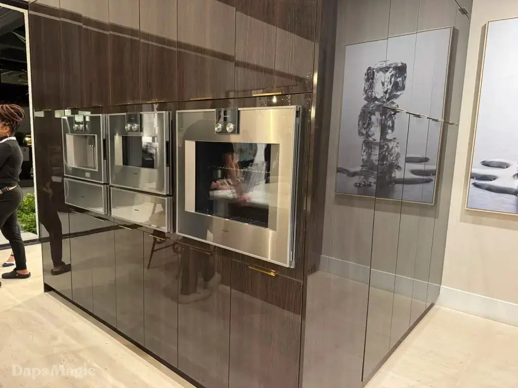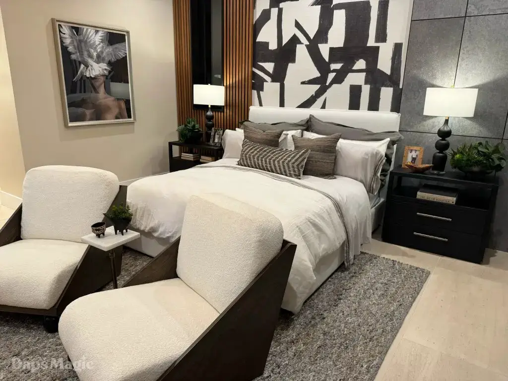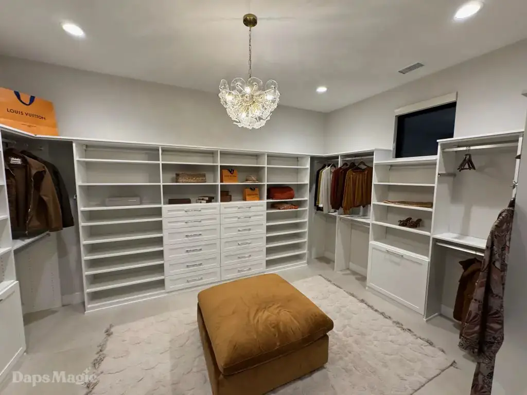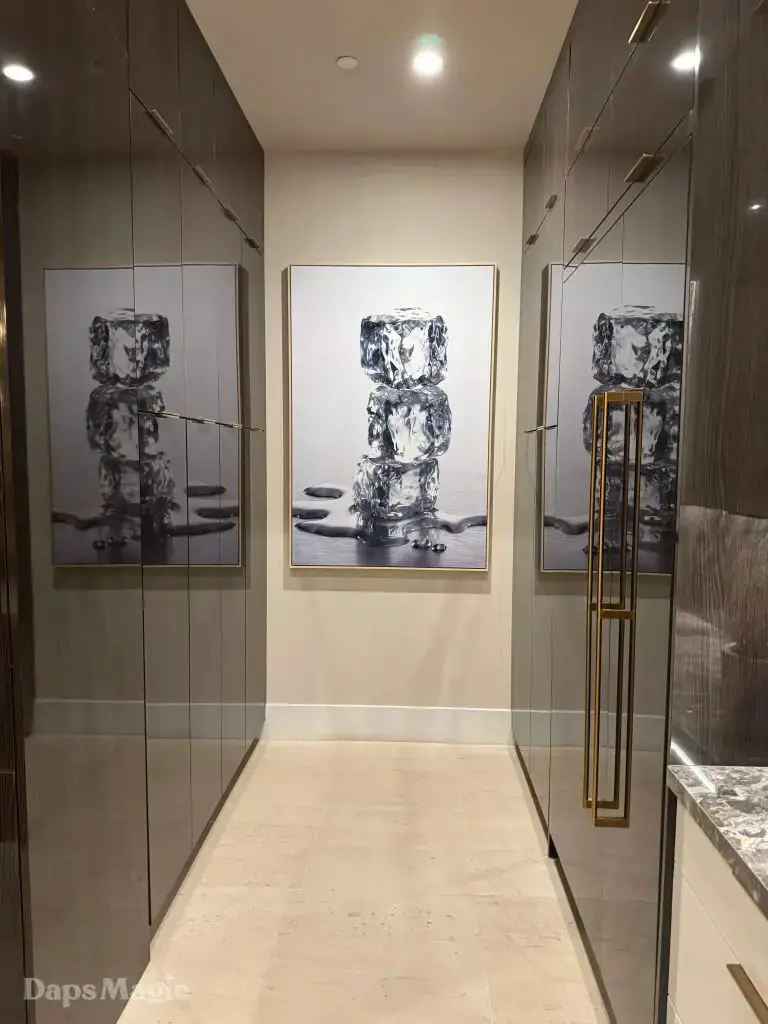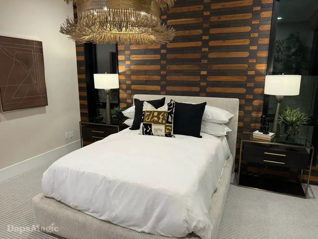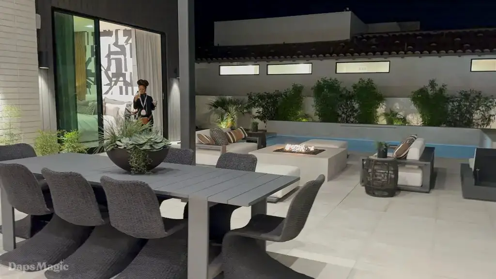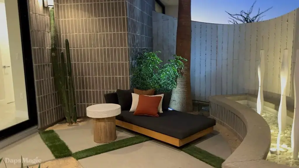 The back half of the house had two more bedrooms in this setup, along with a laundry room. One bedroom had a small outdoor space, bathroom, and decent sized closet. The other bedroom had what I’m going to call a bathroom suite. This included a bathtub with a shower at each end, the bathroom, sinks, and a substantial closet. This one got just about everyone at the event talking about it. It really was impressive. This bedroom was also one of the two that had doors that looked out at the patio/pool space.