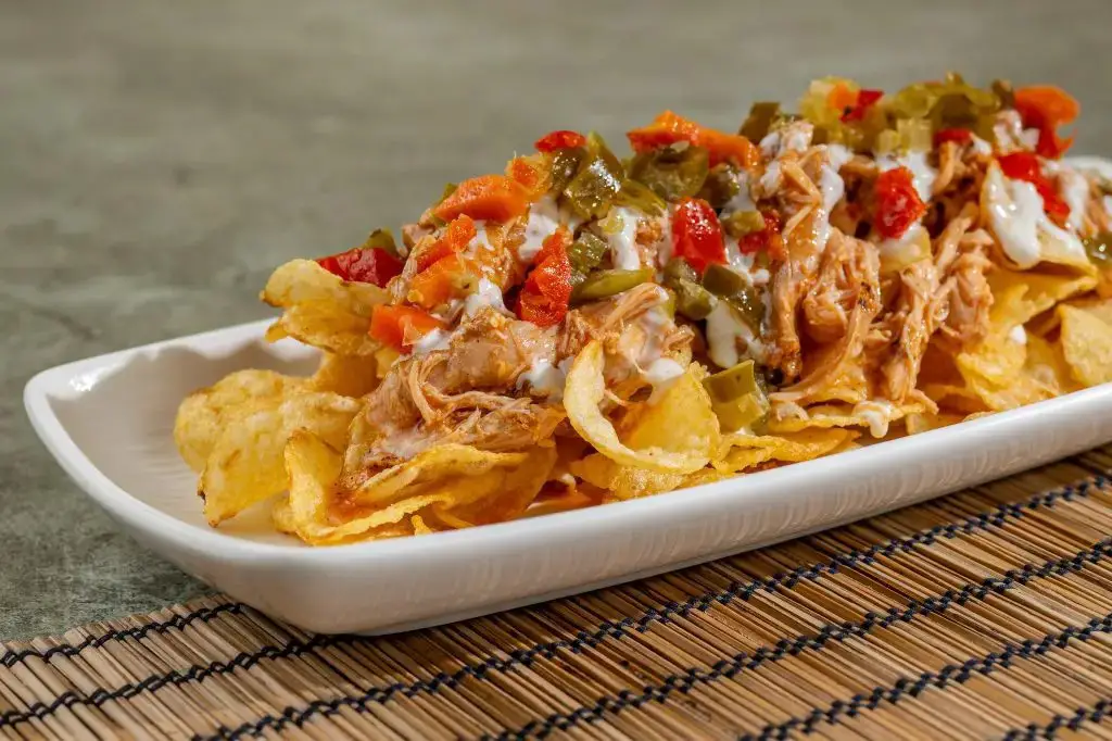 You can find a Pulled Pork Arepa dn Pulled Chicken Arepa at The Smiling Crocodile. Buffalo Chicken Chips can be found at Eight Spoon Café.