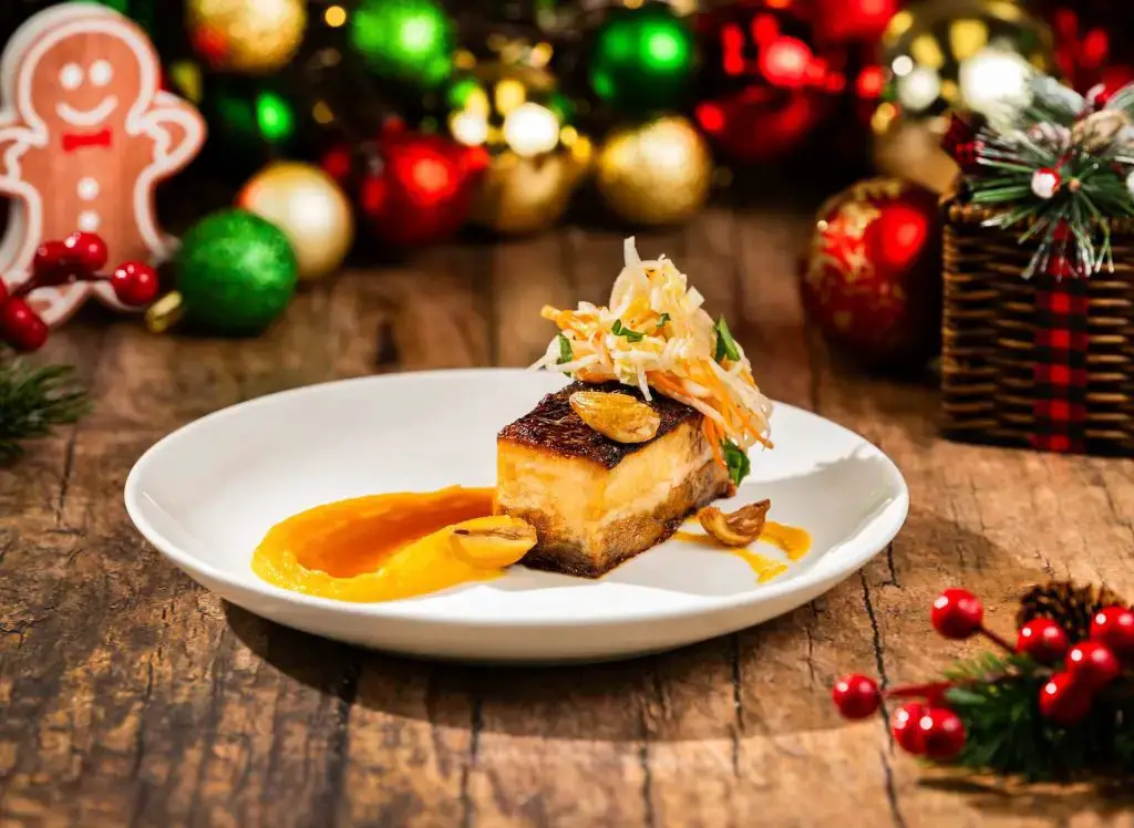 - Crispy Pork Belly: Sweet potato purée, jicama slaw, chestnuts, and apple-cranberry glaze (Available during Mickey’s Very Merry Christmas Party only) (New)