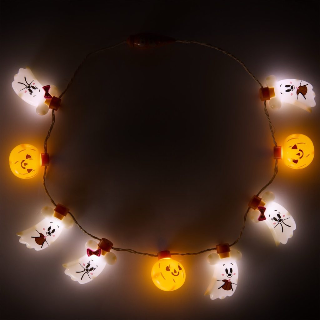 First up are some accessories. The first accessory is a Mickey and Minnie Mouse Halloween Glow Necklace. Give your Halloween look a glow-up with this Mickey and Minnie light-up necklace. The pair appears as adorable ghosts with three jack-o’-lanterns on this accessory that features six different light modes. A must for trick-or-treating and all season long, it’s easy to see how much fun you’ll have wearing it. The price for this item is £13.50.