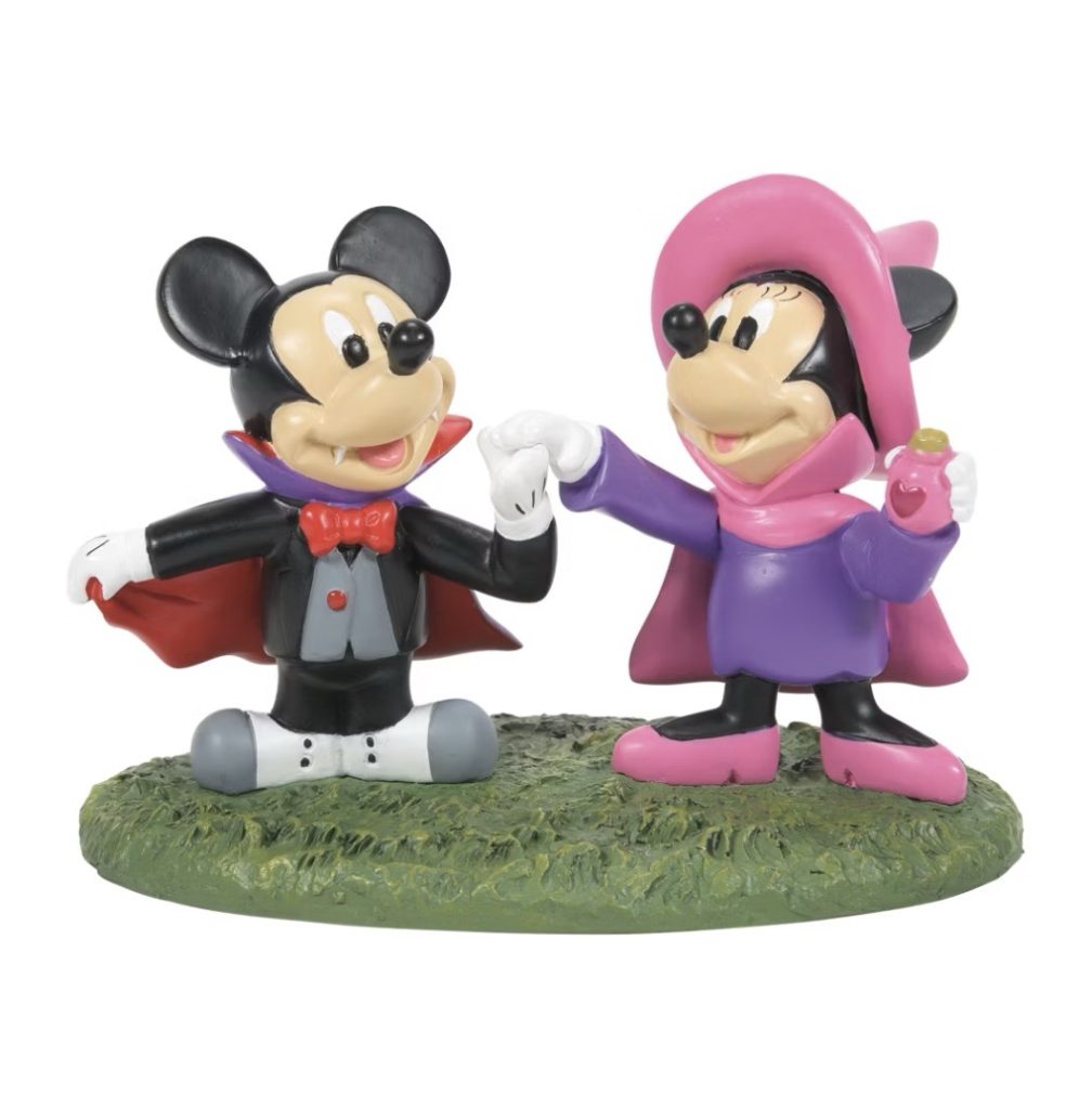 Also available is the Enesco Disney Village Mickey and Minnie Costume Fun Figurine. Mickey, as a vampire, and Minnie, as a pink witch, are ready to hit the town for trick-or-treating in style. Hand-painted and hand-crafted from high-quality cast stone, this piece is perfect as an accessory to your Disney village. These figurines are £26.21.