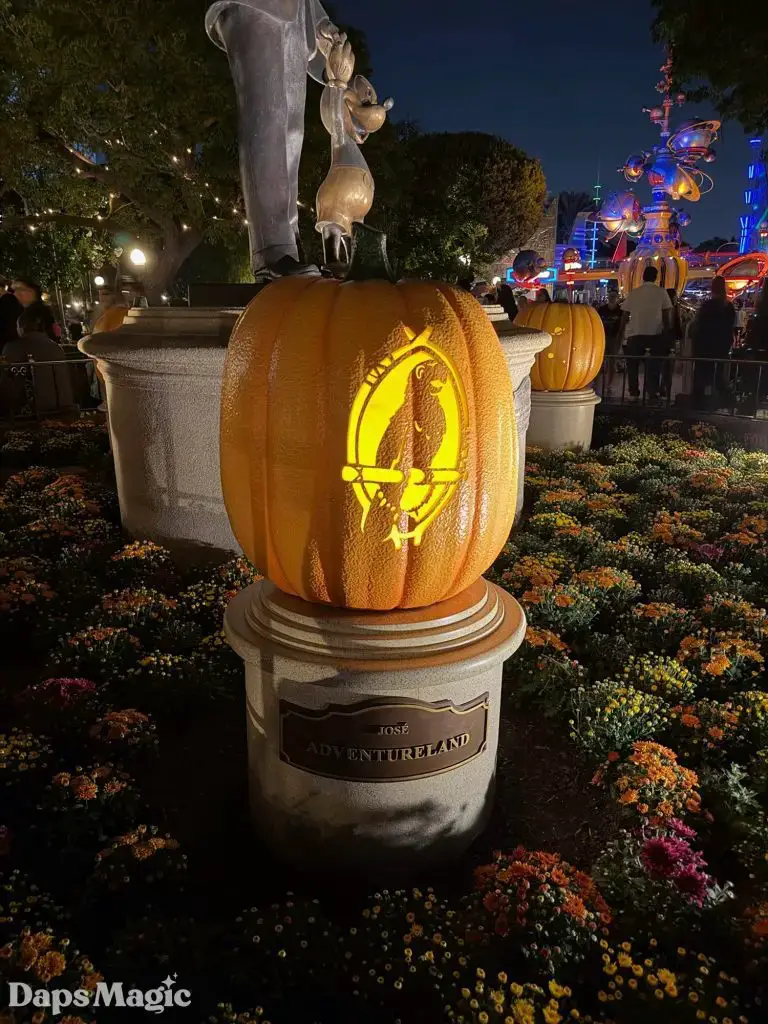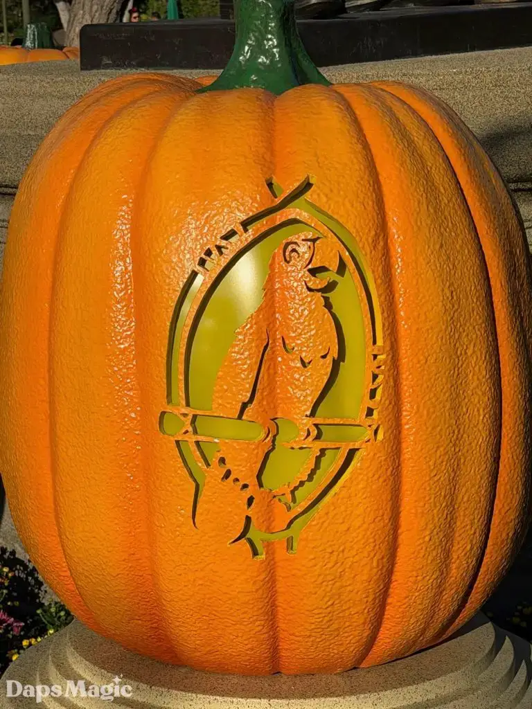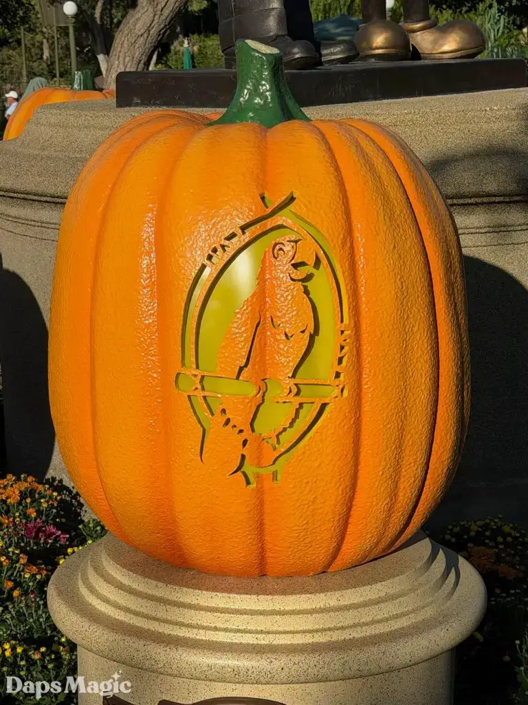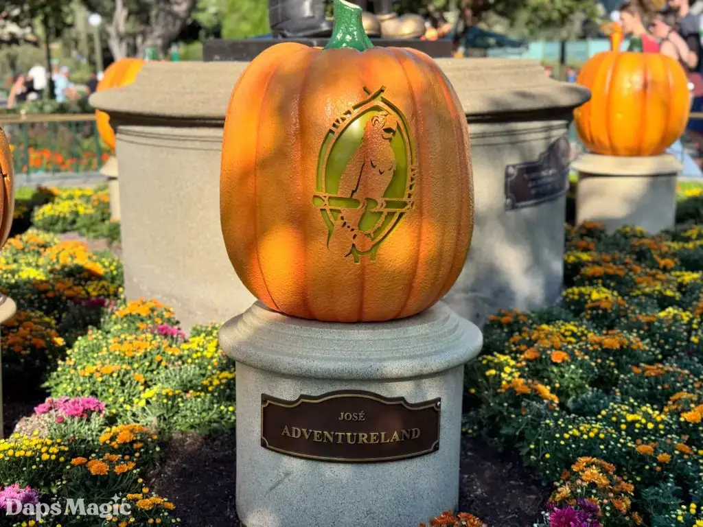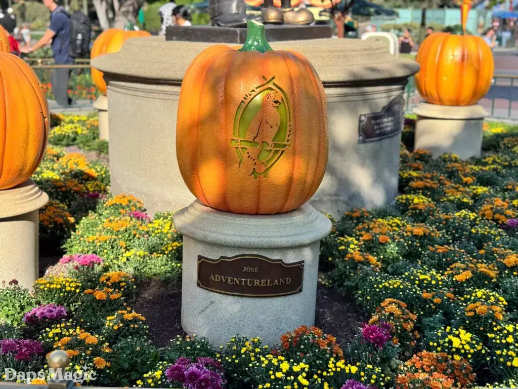 A tradition during Halloween Time each year is the installation of Jack-O-Lanterns around the Partners Statue at Disneyland. These pumpkins represent each of the lands in the park, except Star Wars: Galaxy’s Edge. Until recently, Adventureland was represented by a Jack-O-Lantern of Tarzan. This week, that pumpkin was replaced with a new one. Now, Adventureland is represented by the likeness of Jose from Walt Disney’s Enchanted Tiki Room.