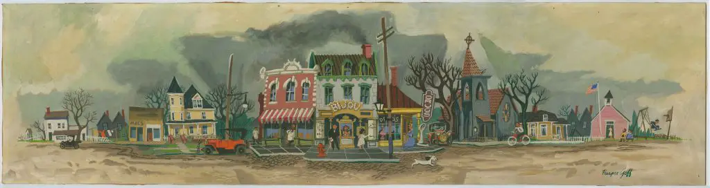 Harper Goff (1911–1993), Main Street, U.S.A. concept art, c. 1950s; Collection of the Walt Disney Family Foundation, Harper Goff Collection, © Disney