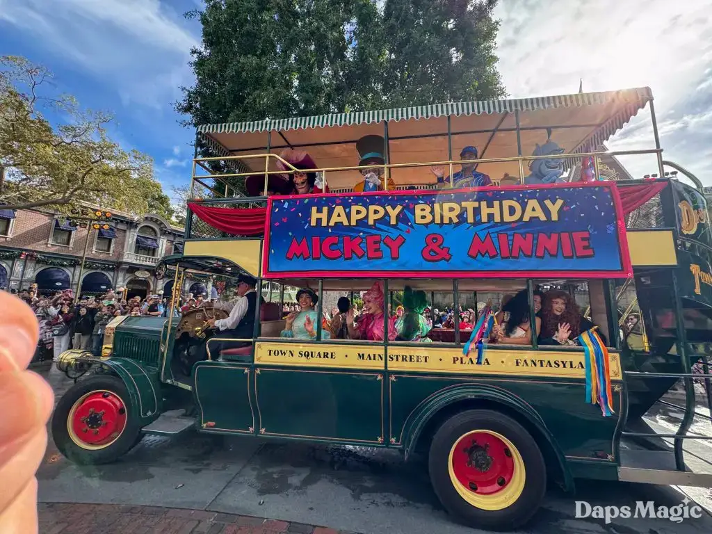The Daps Magic team stopped by the Happiest Place on Earth to catch the celebration. Below is a video and photos of this birthday cavalcade for Mickey Mouse and Minnie Mouse.