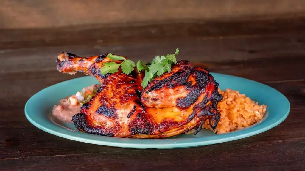 - Achiote Half Chicken: Roasted achiote-marinated chicken served with Spanish rice, refried beans, and nopal salad