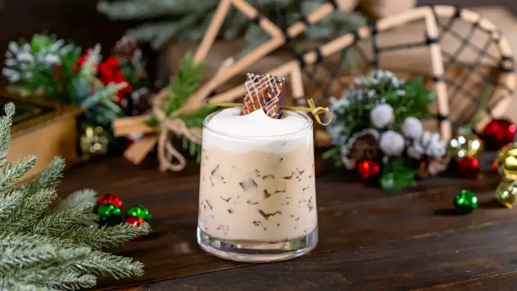 - Cranberry Christmas Mule: Gin, elderflower and ginger liqueurs, cherry purée, and cranberry and lime juices topped with a citrus hard seltzer and garnished with a lime wedge gummy candy
