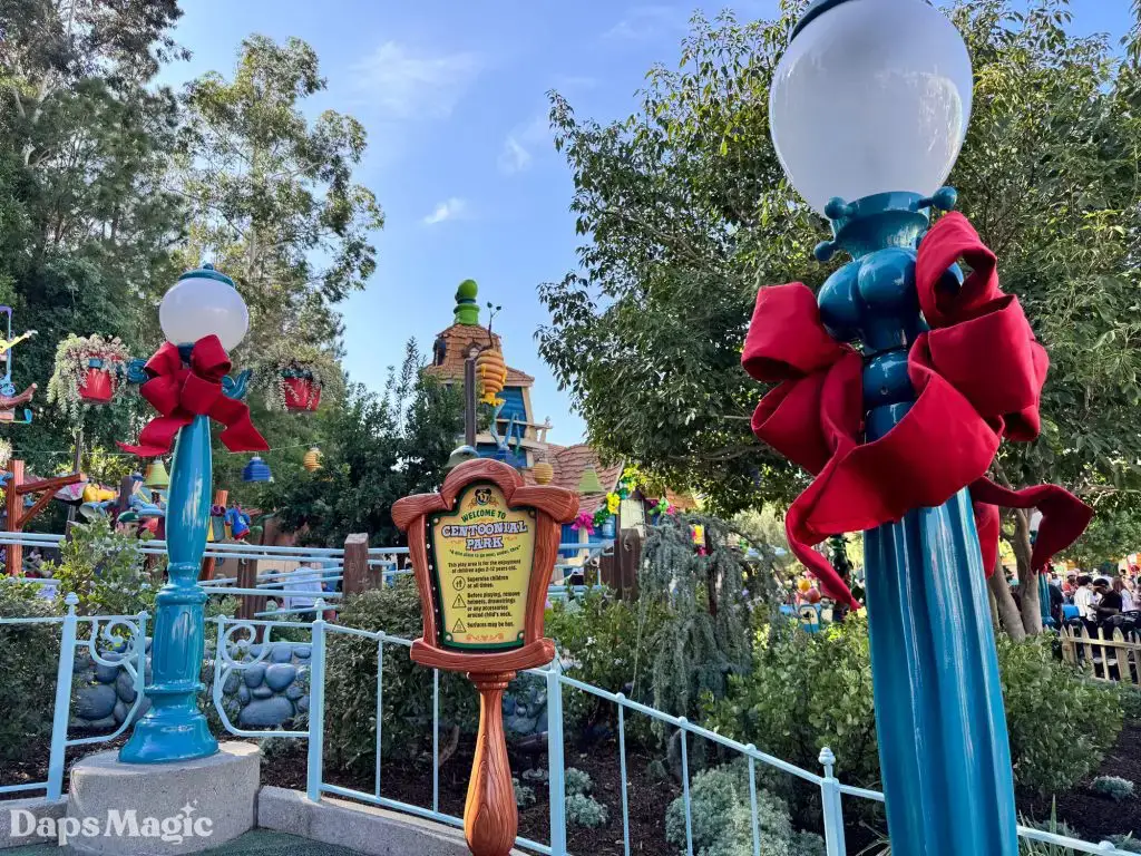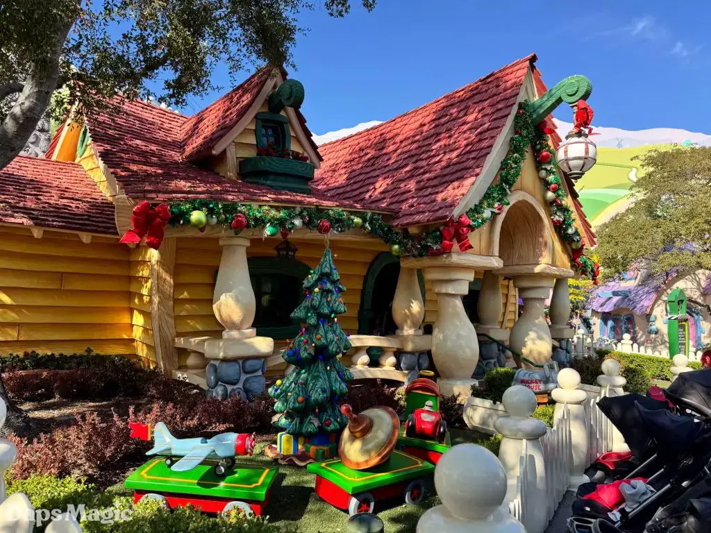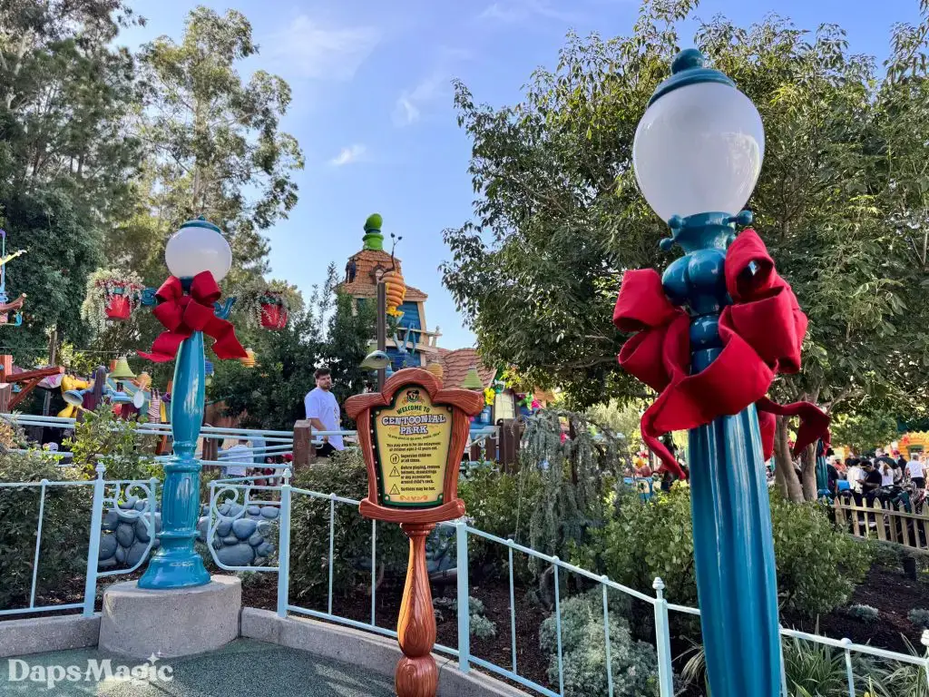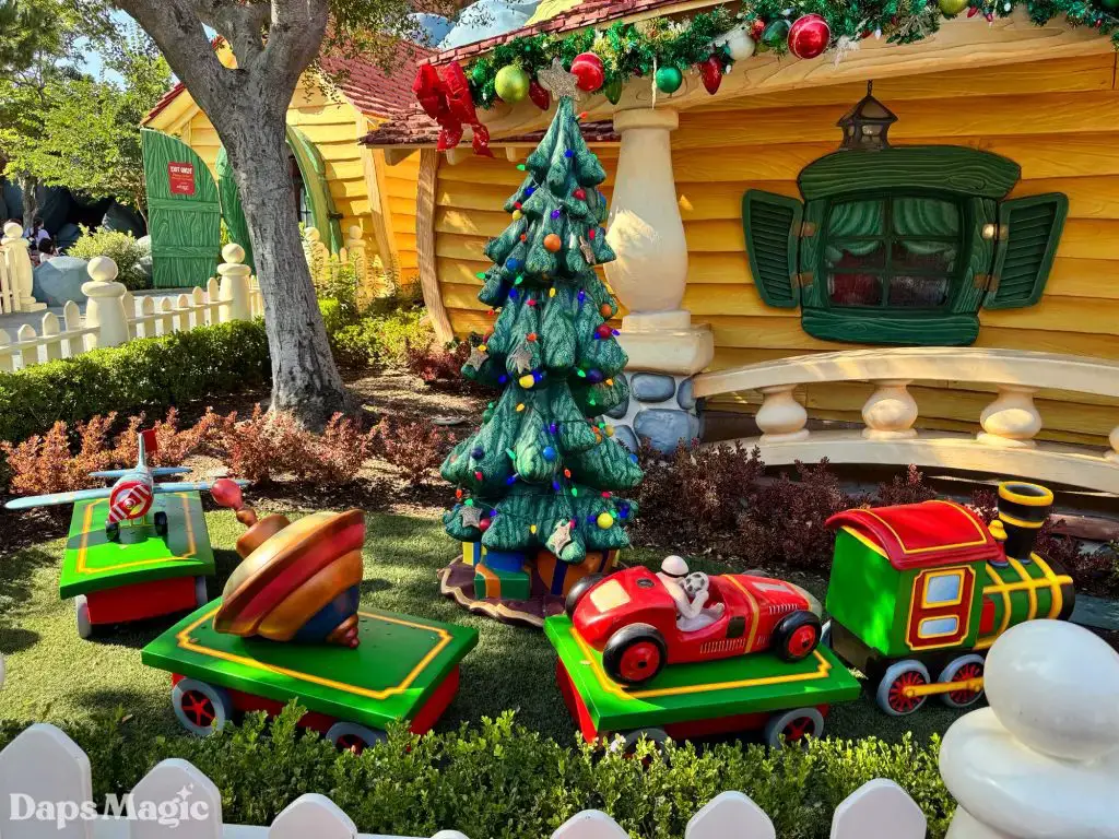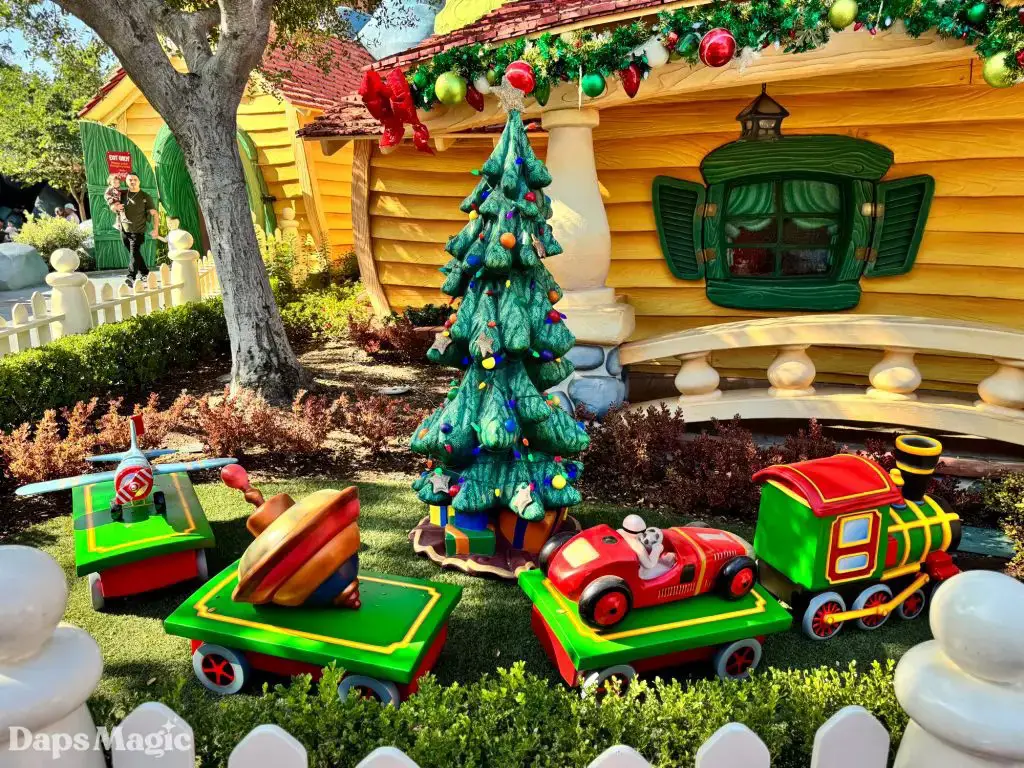 The Holidays are coming to the Disneyland Resort. While the official Holidays at the Disneyland Resort celebration kicks off on November 14th, signs of merriment are already appearing throughout the resort. One of the places that is already showing off its Christmas spirit is Mickey’s Toontown. There, decorations can already be found decking the halls. This year, there are some fun additions to the decorations. For example, in front of Mickey’s house, there is a new toy train. Over at the other end of Toontown, some decorations may look pretty familiar to those with eagle eyes and sharp memories of Toontown before its recent re-imagining.