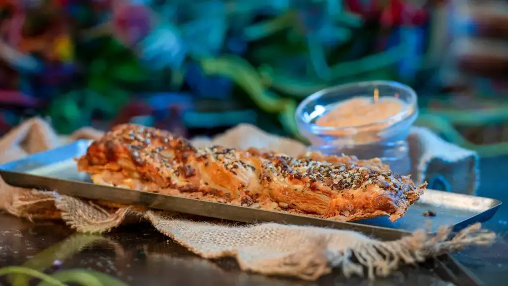 - Life Day Cheese Branch with Kat Saka’s Sauce: Croissant dough mixed with cream cheese, parmesan, cheddar, and spicy alfredo dipping sauce