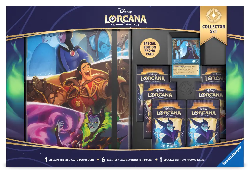 A new Disney Lorcana Trading Card Game (TCG) Disney Villains-themed collector set is heading to Costco. This bundle is available exclusively at Costco locations in the United States and the United Kingdom. This collector’s bundle features a special edition promo card and a 9-pocket portfolio, as well as booster packs from the game’s inaugural set, The First Chapter – making it a rare chance for fans to get their hands on cards from that set. This bundle is available at an exclusive price for members.