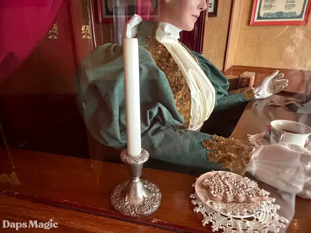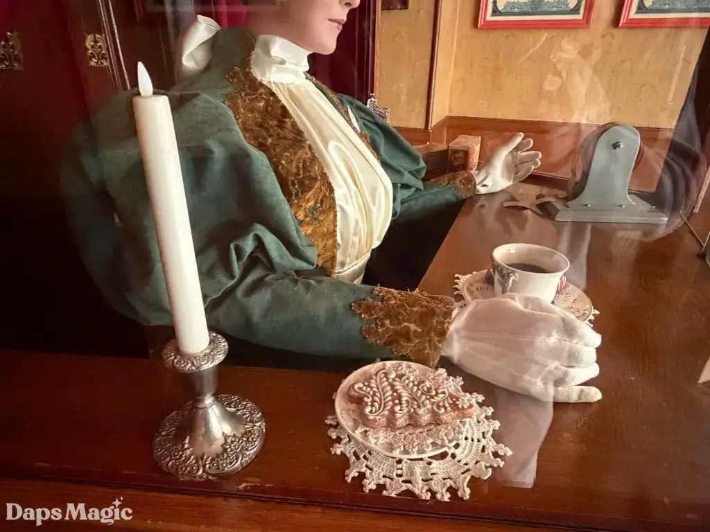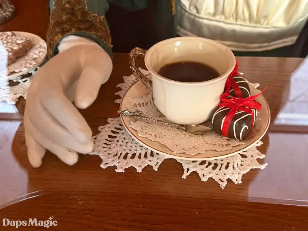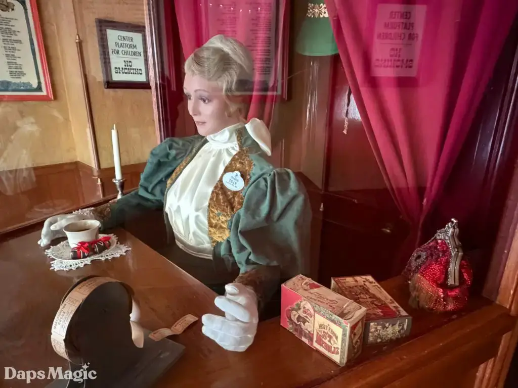 The Holidays at the Disneyland Resort officially begin on November 14, 2025. However, there are signs of the upcoming festivities starting to show up in the parks. On Main Street at the Main Street Cinema, Tilly the ticket taker has gotten into the spirit of the season. Her ticket booth has been decked out with holiday trimmings. This includes a candle, a new cookie, a new piece of chocolate, and some Christmas boxes.
