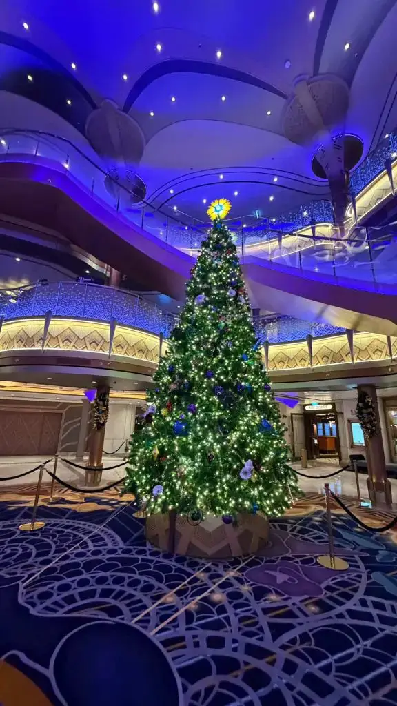 The Disney Destiny is now taking guests on 4- and 5-night cruises to The Bahamas and Western Caribbean as a part of its inaugural season. One of the great things about a new ship and an inaugural season is lots of reveals. Many of these reveals happened during media previews and the inaugural cruises aboard the ship. One of them also happened this week when the Disney Cruise Line revealed what its Christmas tree looks like.