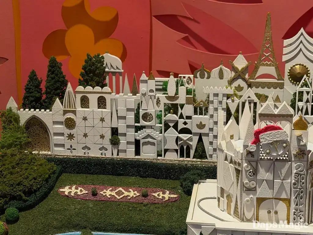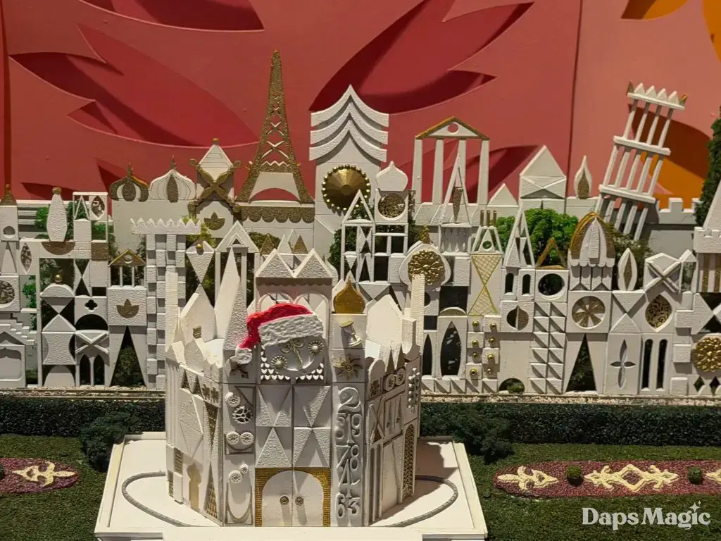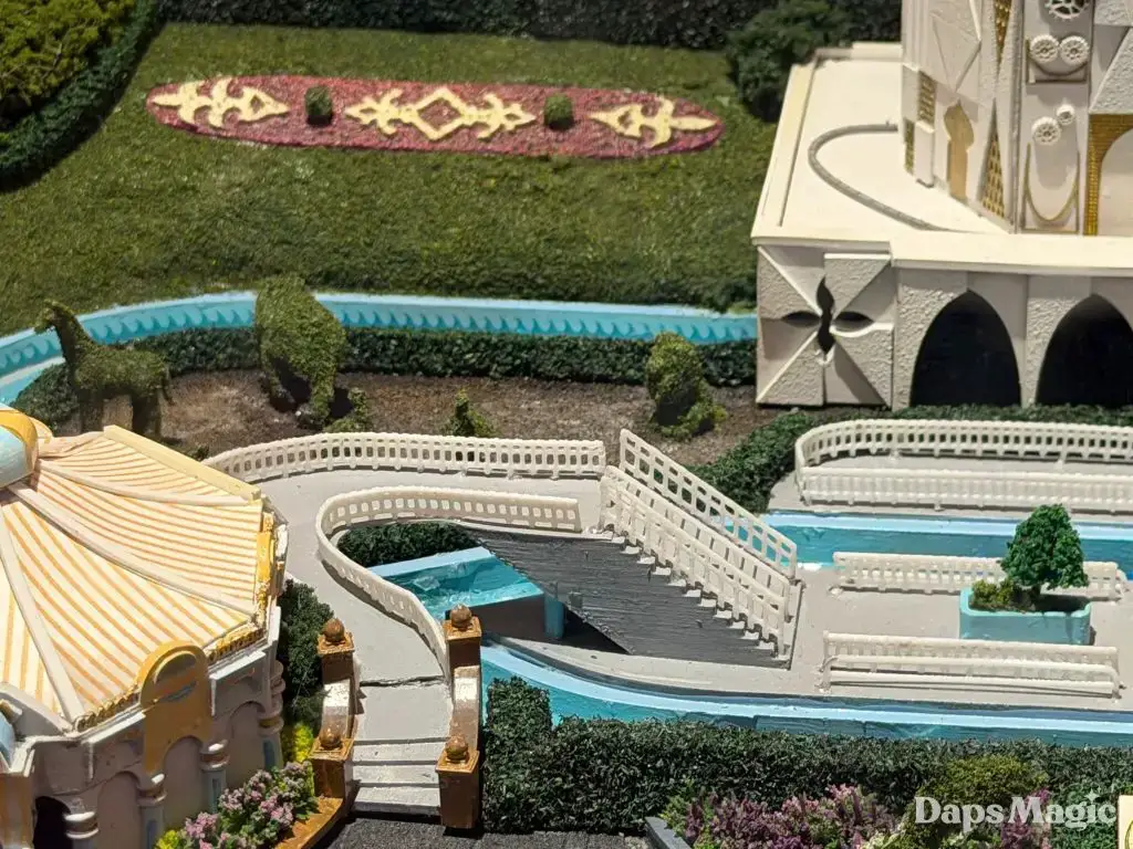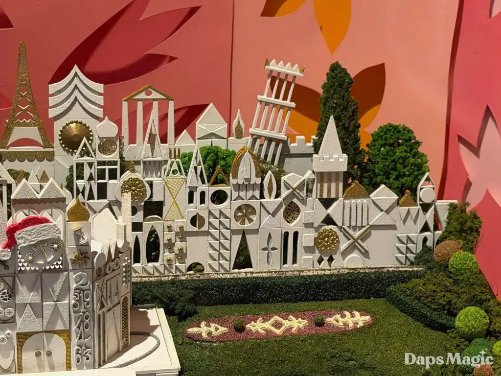 This model wasn’t just for a video, however. It can now be found in the store at the exit of it’s a small world Holiday in a display window. This miniaturized version of the attraction is absolutely beautiful. Daps Magic team member Steven stopped by and took these pictures of this incredibly detailed model. Check out the photos here: