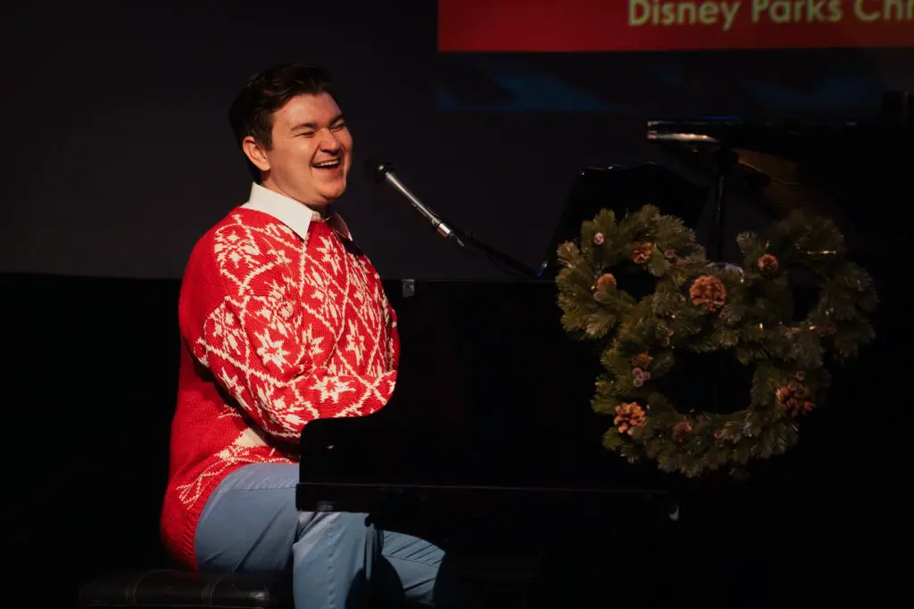 There is a lot of Disney music that celebrates the holidays, with a lot of it being original. During this concert, Noah gave a fun look at the history of Disney holiday music that dated back to the earliest days of The Walt Disney Company, to the early days of the parks, and all the way up to today. This musical journey included a wide variety of different songs, and really all types of songs, that Noah brought to life with his voice and piano. History was also made with the help of special guest performer and Jungle Cruise skipper Zach Timson. The soon-to-be Imagineer joined the stage to sing an original tune about the Jingle Cruise that had been written by Noah and former Imagineer Kevin Lively. This duet with Noah and Zach was quite humorous and made for a fun highlight of the night.