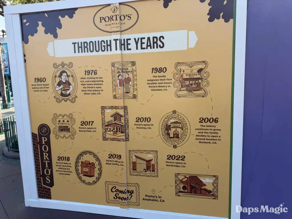 According to the graphics on these walls, here is the story of Porto’s Bakery and Cafe through the years: