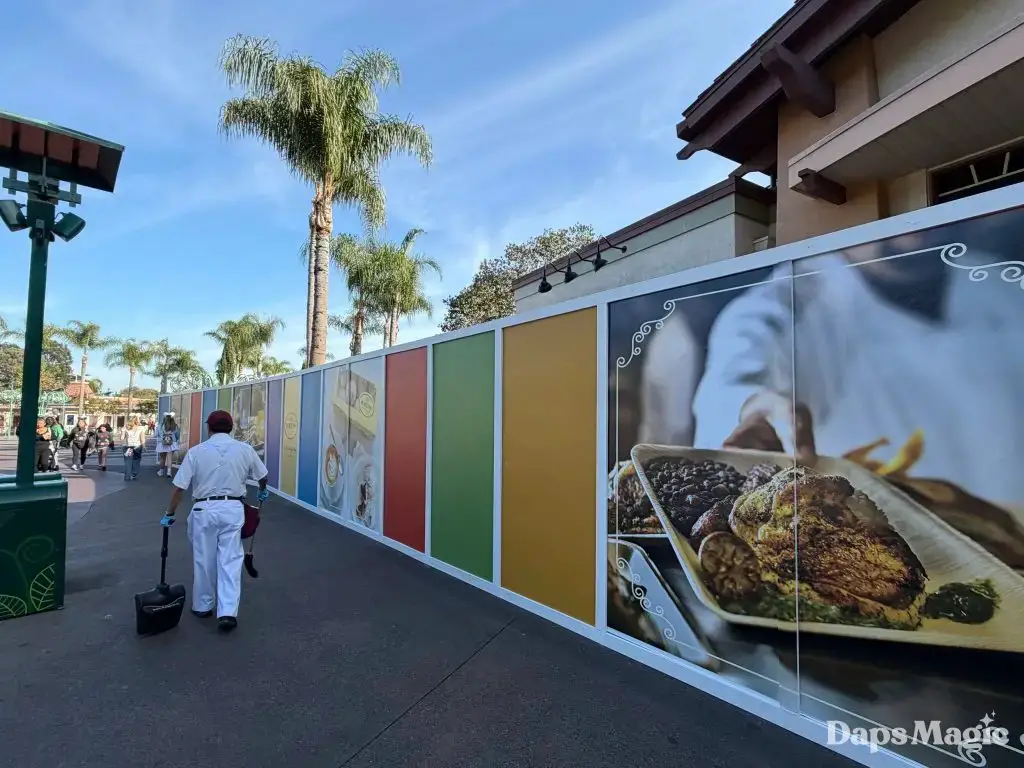 Daps Magic team member Steven stopped by the Disneyland Resort on his birthday (Today! Happy Birthday, Steven!) and took some photos of the new walls and the story they tell. They surround the area that will be the future building and home of this new dining destination. Take a look at these photos here: