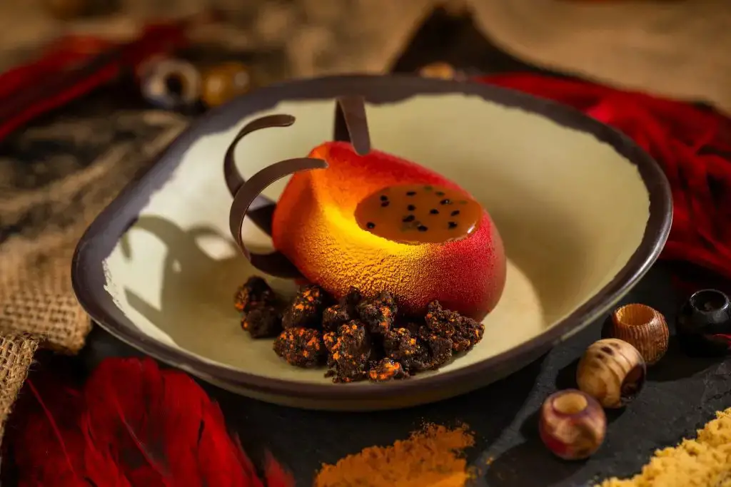 If you’re looking for an adult beverage, you may want to enjoy the Trader’s Tailwind. This drink features Captain Morgan Original Spiced Rum, Bols Triple Sec Liquer, mango purée, Minute Maid Orange Juice, chamoy, and ginger beer with a chili-lime-rimmed glass garnished with a dehydrated blood orange wheel.