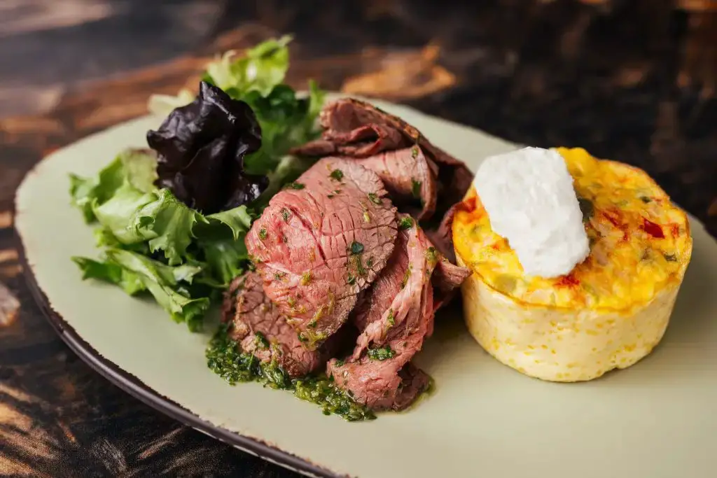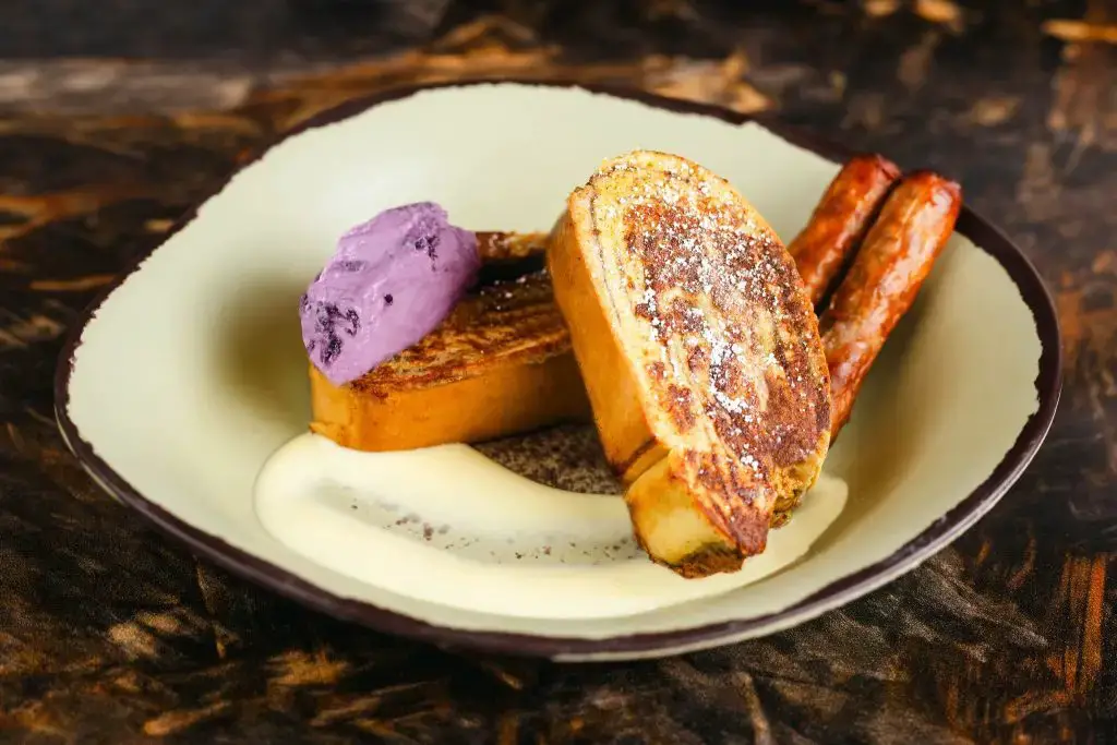 There are several breakfast options as well, and breakfast is served until 10am. You can enjoy Cinnamon French Toast with blueberry cream, cheese, fruit anglaise, and sausage. Another breakfast item to enjoy is the slow-roasted pork shoulder potato hash with chorizo sausage and charred onion sauce.