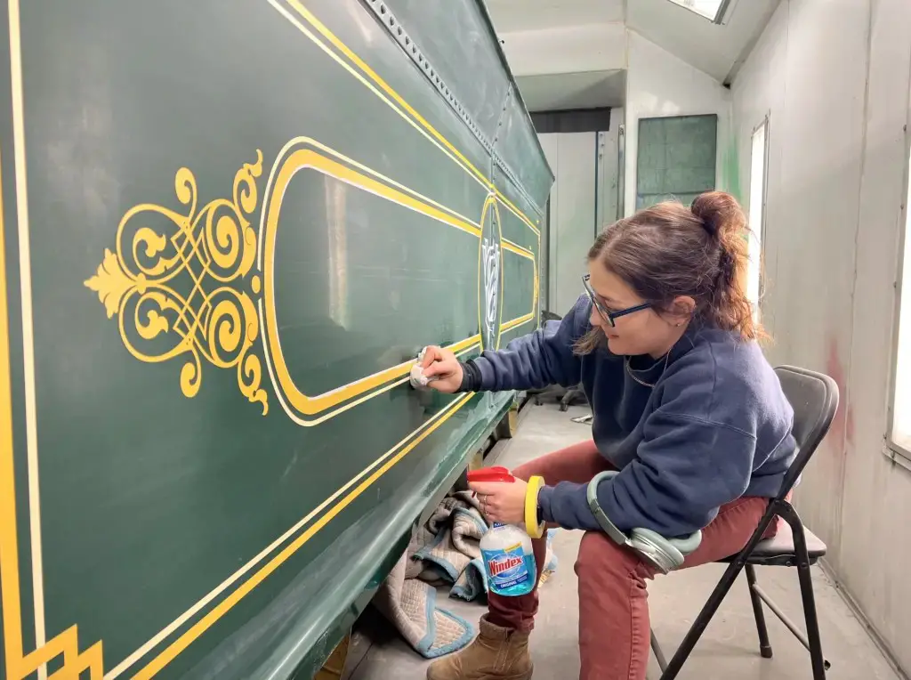 The Roger E. Broggie returned to the rails in late 2023. It showcases the beautiful and rare art of hand-painted detailing and gold leafing. Lou shared how each stripe, number, and letter was meticulously applied by hand, preserving an “authentic craftsmanship” that is rarely seen today. This attention to detail continues on another of Walt Disney’s legacies, as he was known to be very attentive to details.