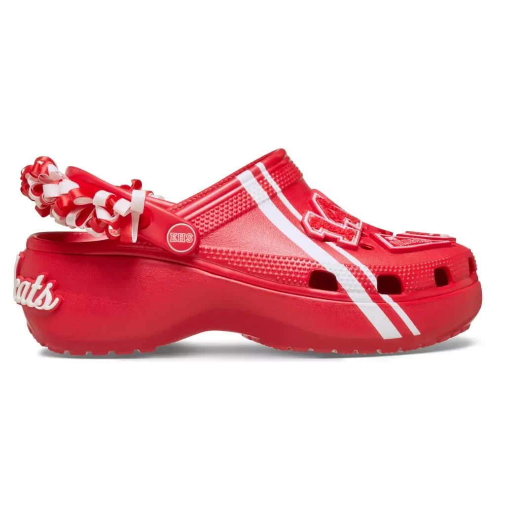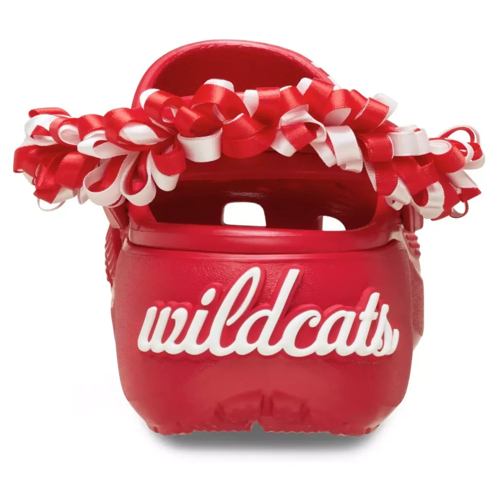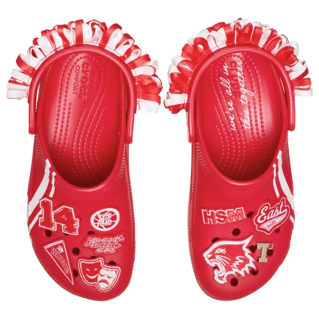 What I’ve been looking for! Wildcats and East High embroidered insignia cover the uppers and heels of these High School Musical clogs from Crocs. Cheerleader-style curly ribbon pom-pom trim decorates the heel strap. Slip into these casual clogs and relive those simple days of Disney Channel Original Movies!Magic in the details
