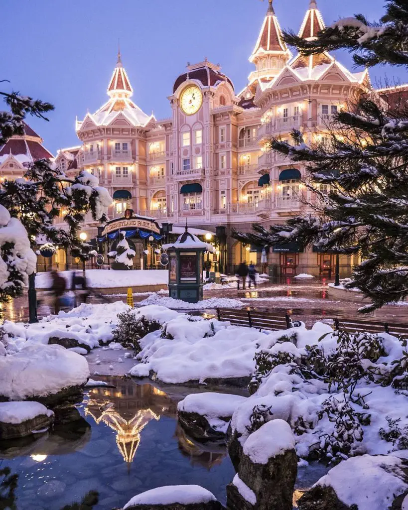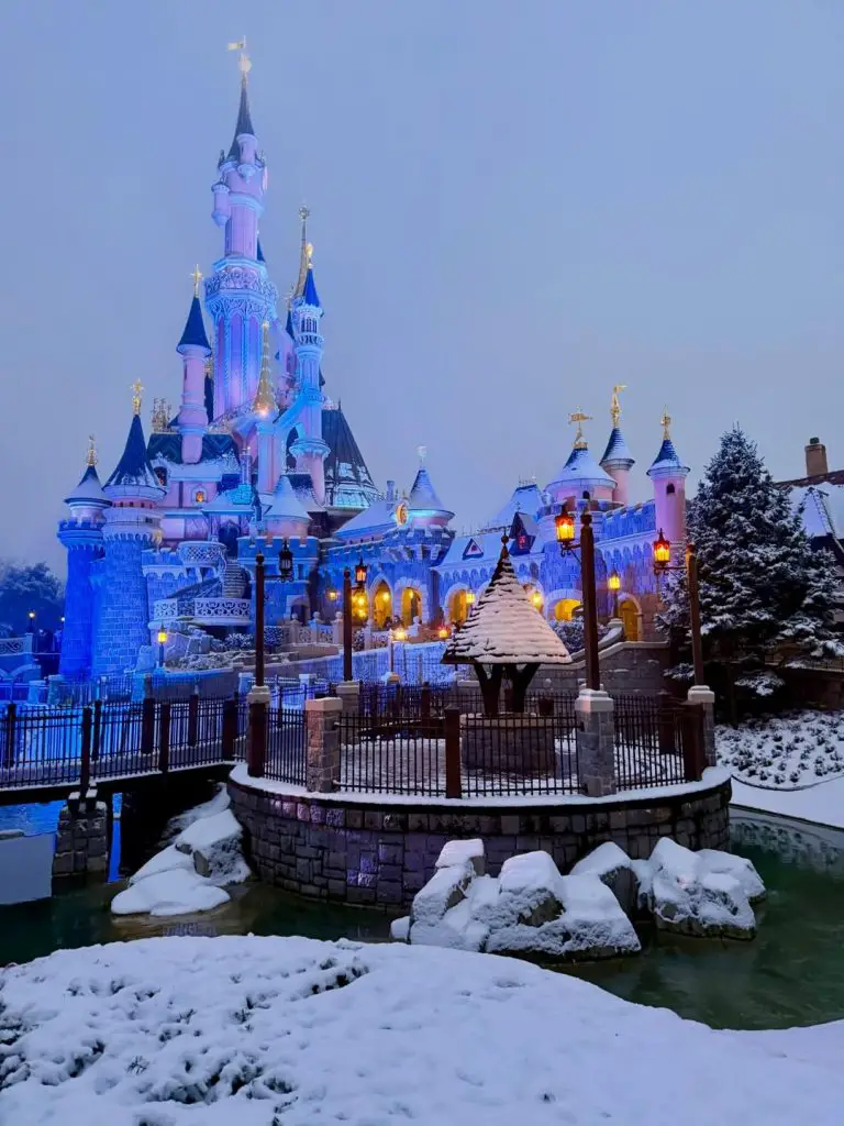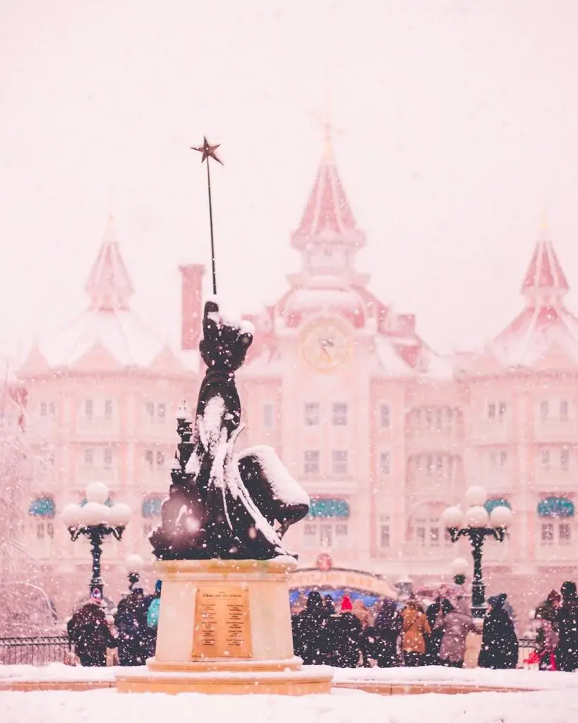 Recently, Disneyland Paris shared some beautiful pictures of snow blanketing World of Frozen in what will soon be called Disney Adventure World. Over the weekend, Disneyland Paris shared more photos of what it is like to walk in a winter wonderland at this beautiful Disney park in France. Check out what it looked like during the first snow of the year at Disneyland Paris in the photo tour below! While the snow may not last long, when it falls, it’s certainly beautiful!